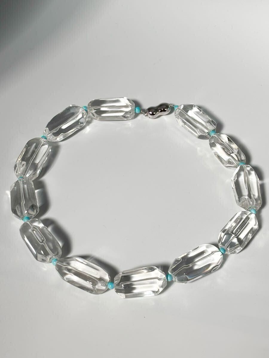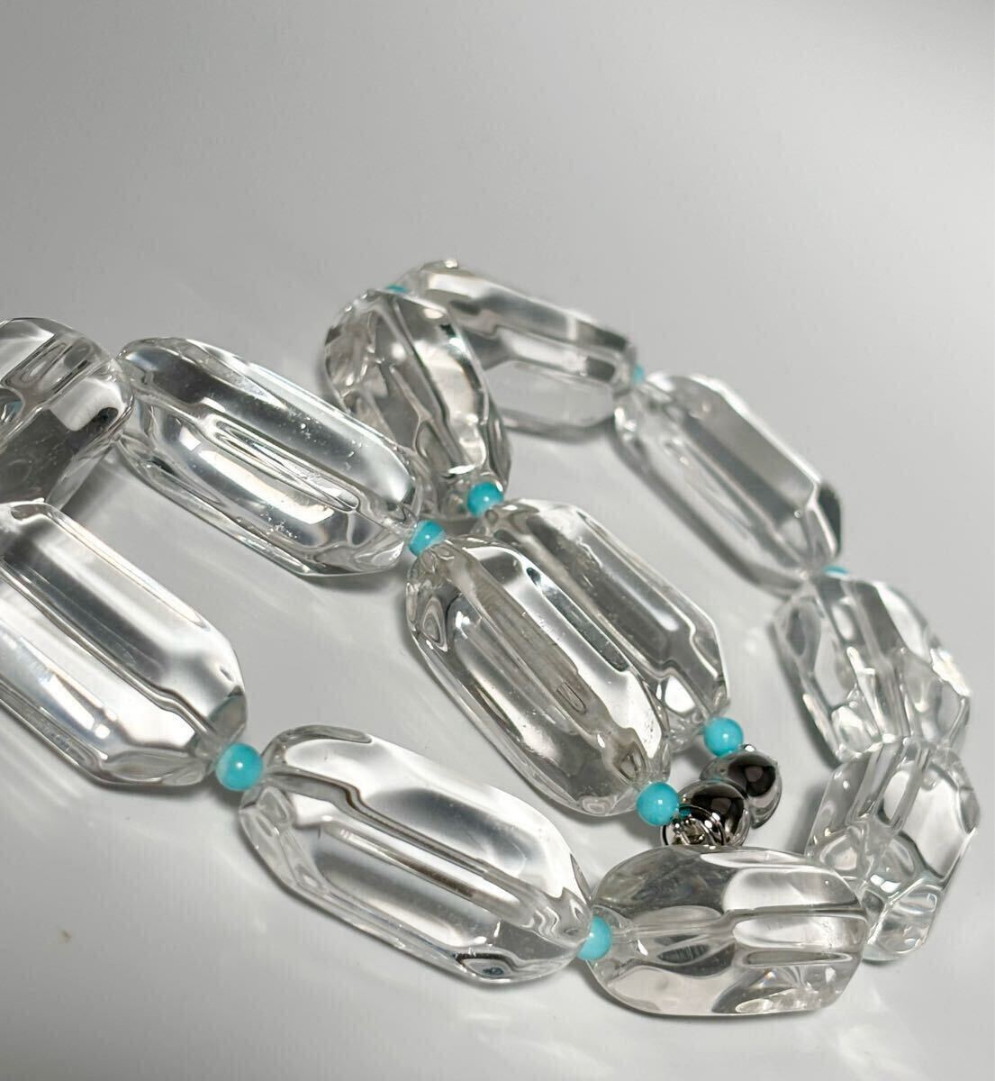 大粒の水晶が印象的なボリューミーなネックレスのご紹介です。