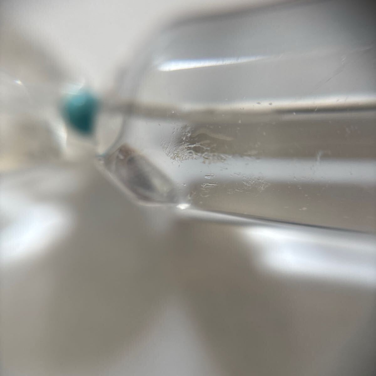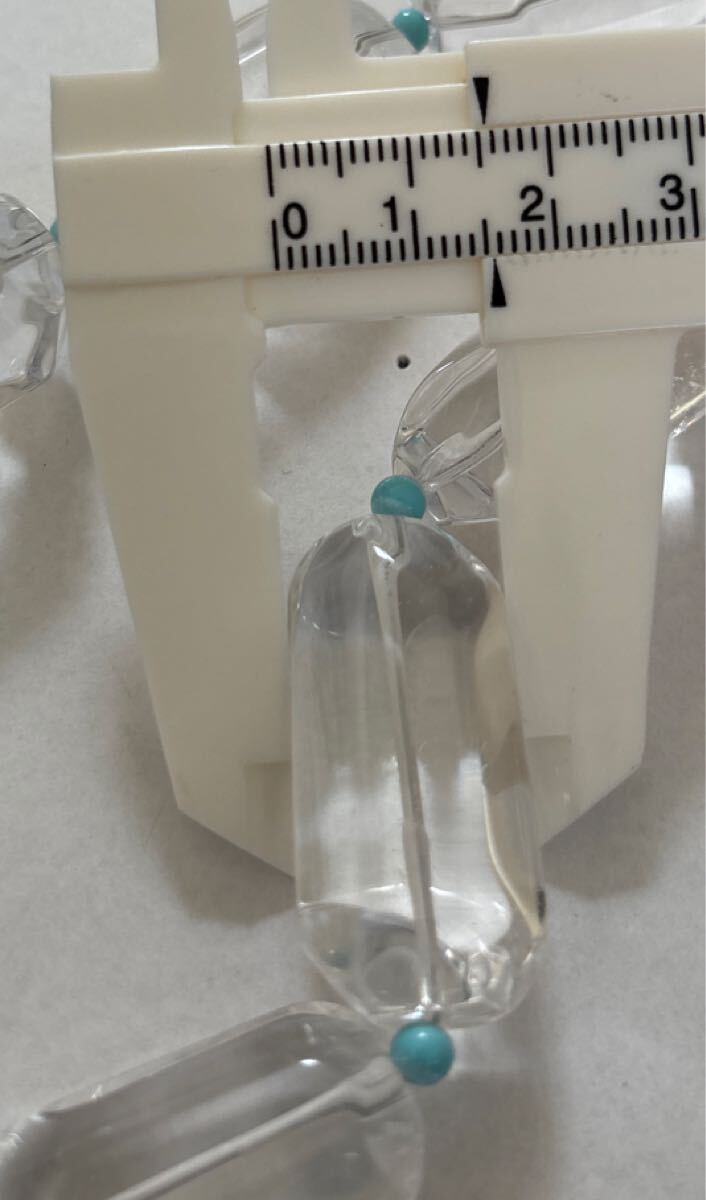 間のお石は明るい水色で、ターコイズやアマゾナイトのように見えますが何のお石かはわかりません。