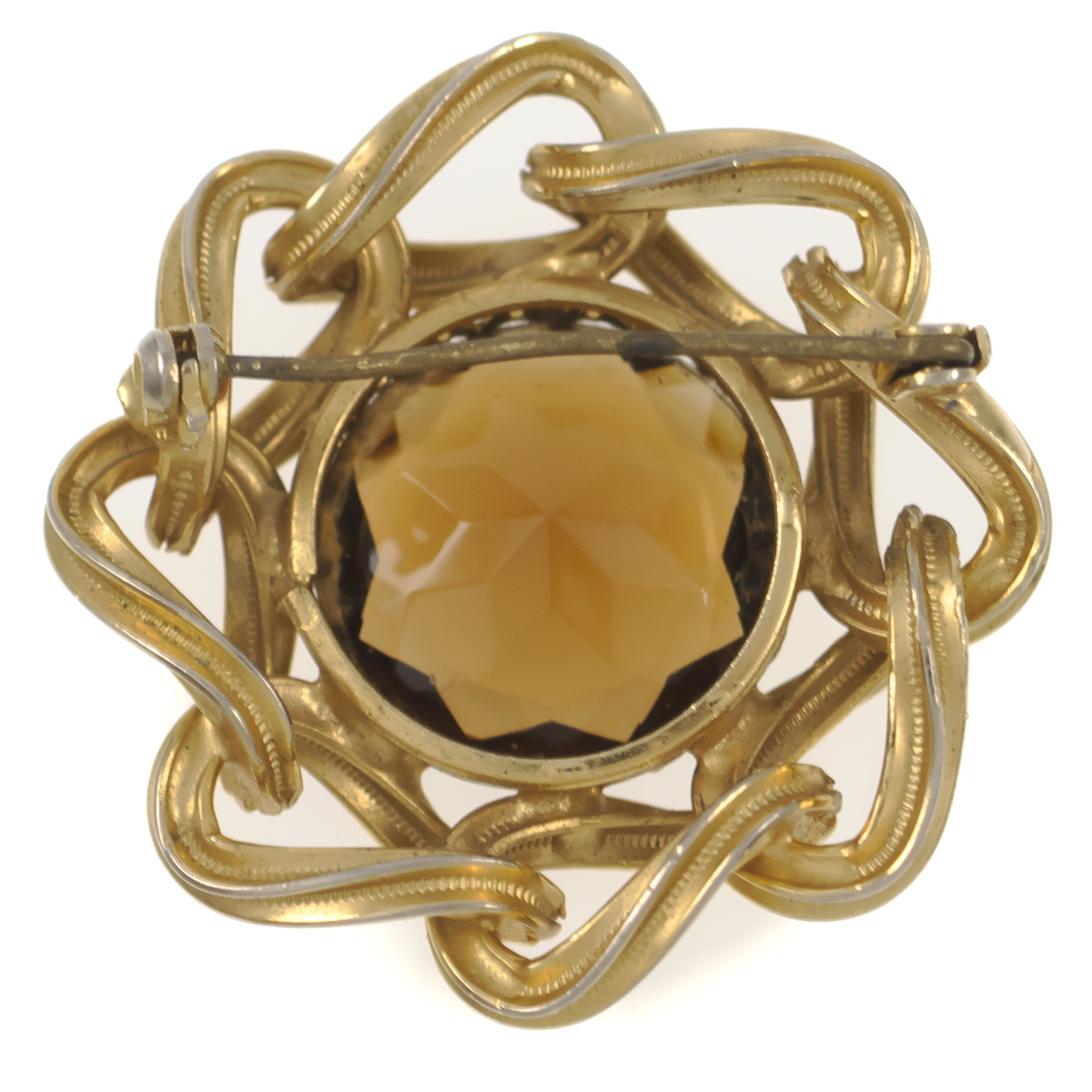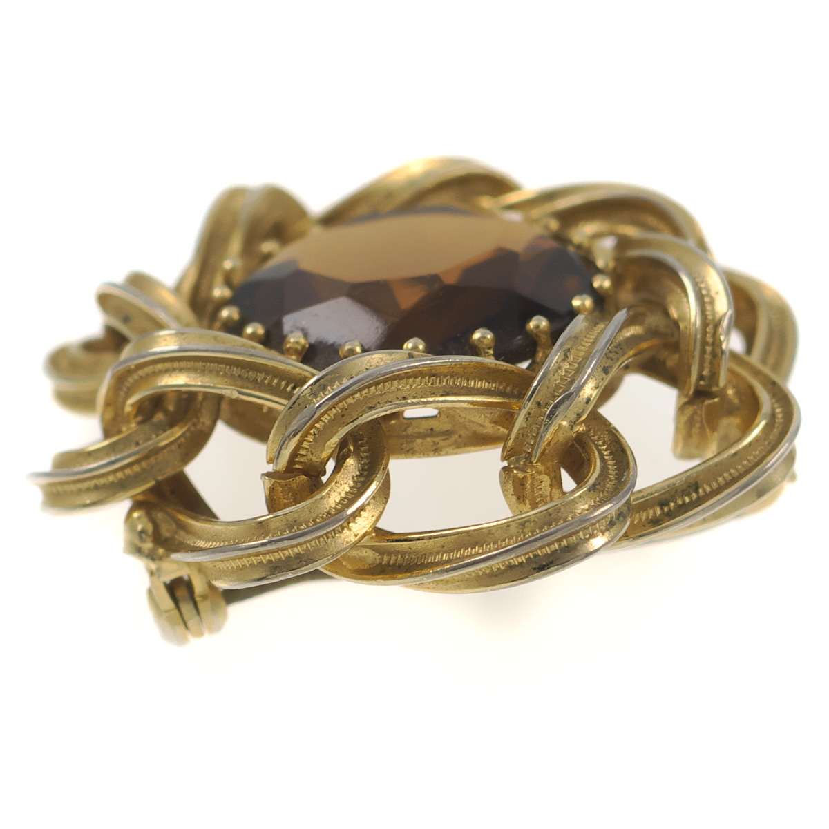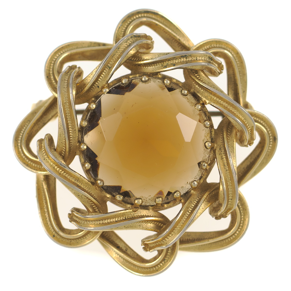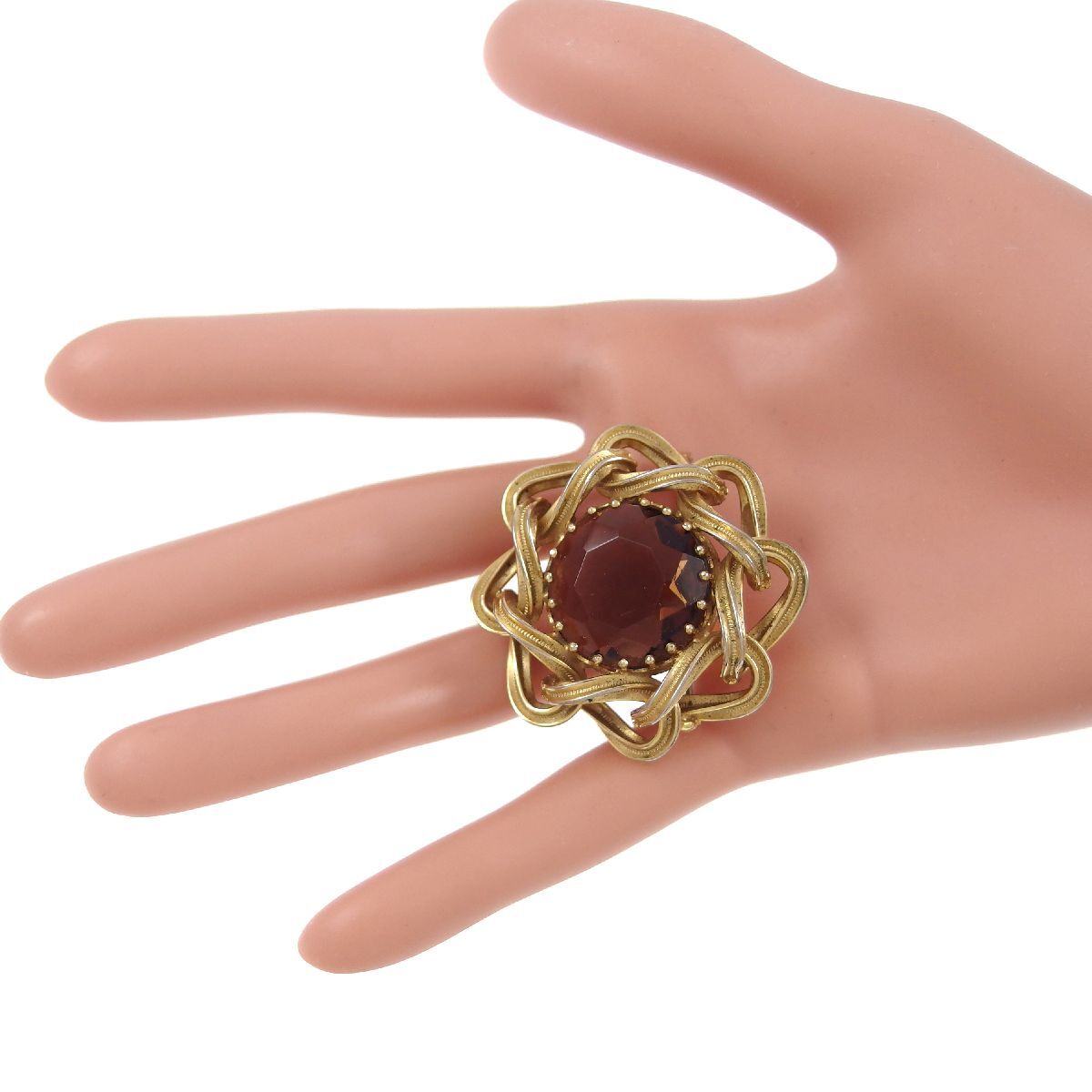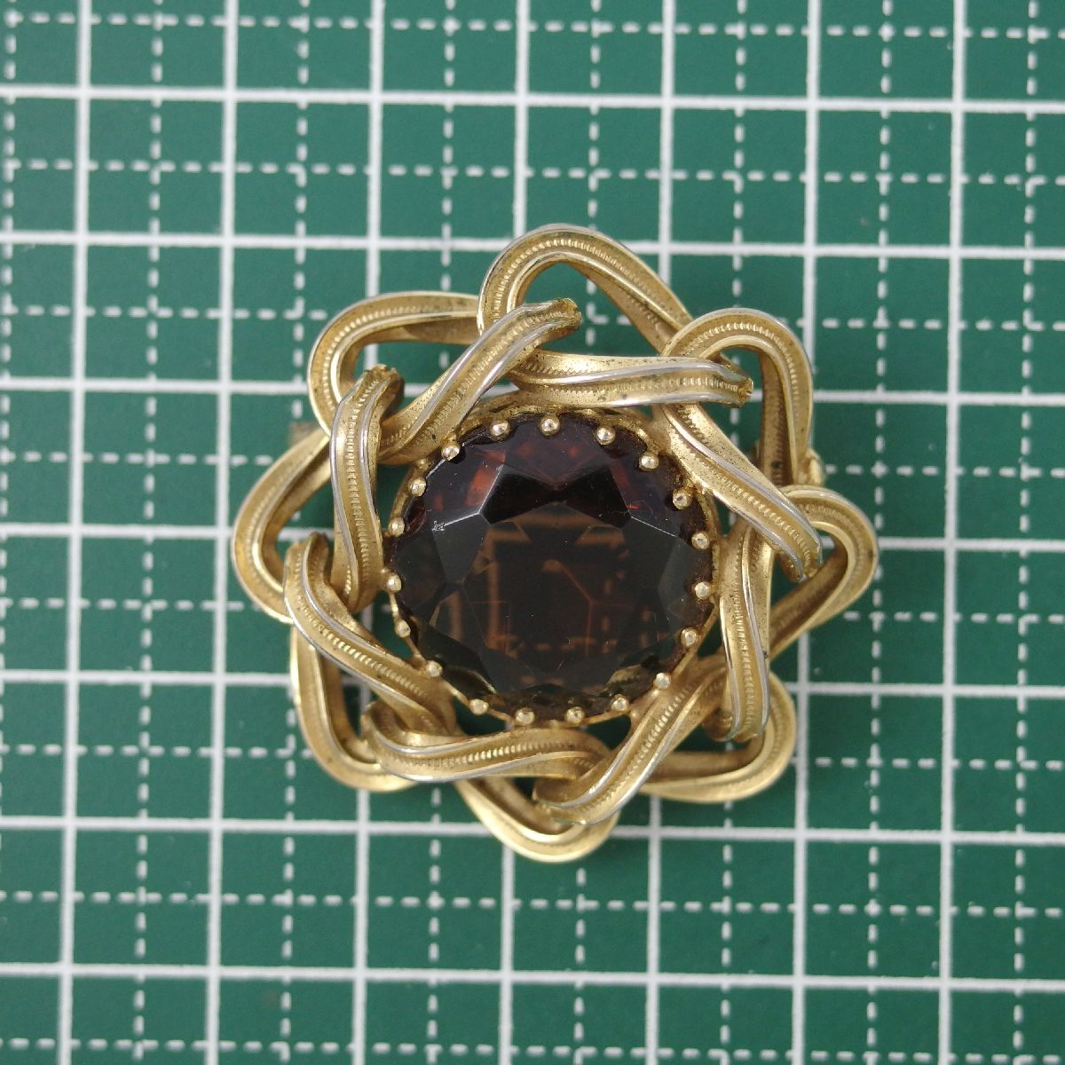 UK3917◆ フラワーモチーフ ブラウン系ガラスストーン 色石 イギリス 英国 ◆ ヴィンテージブローチ ◆
