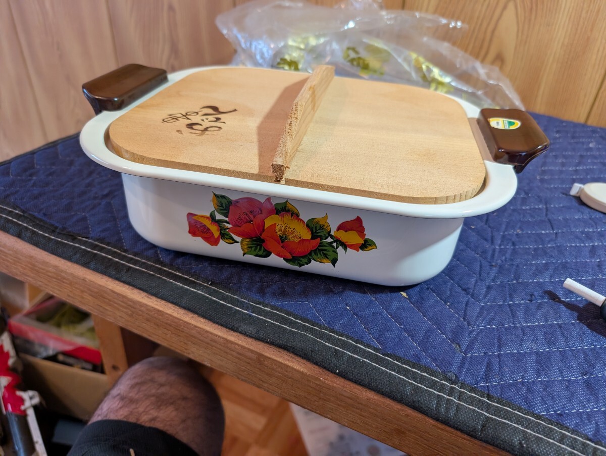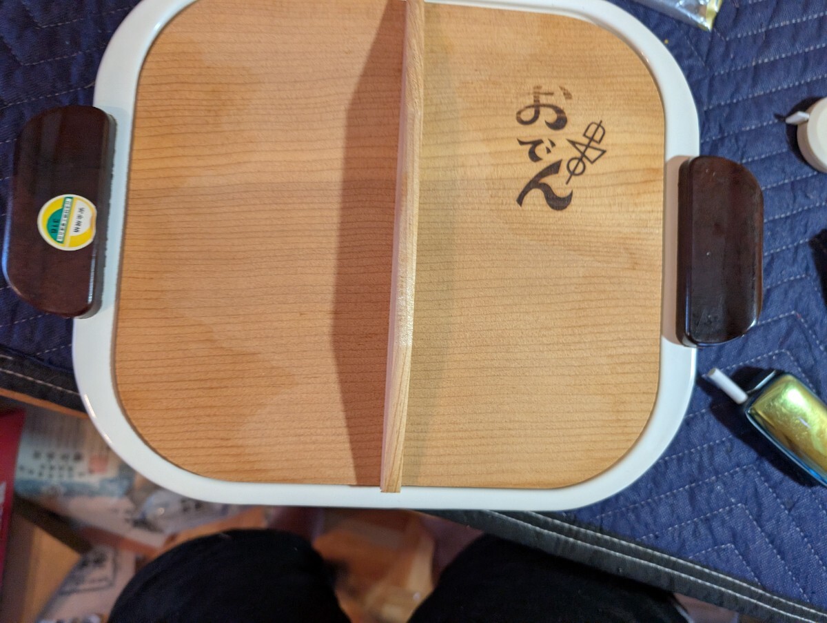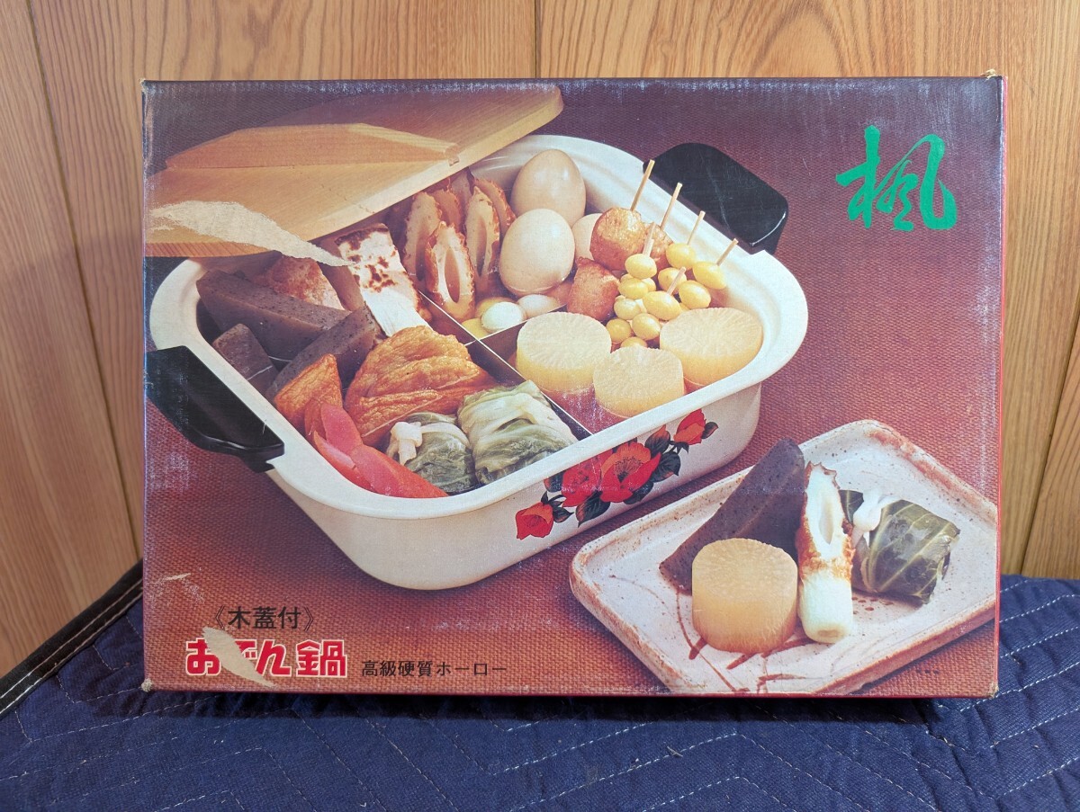 昭和レトロなおでん鍋です。中の仕切りは有りません。鍋と、木蓋だけです。梱包はプチプチを巻いて発送したいと思います気になる点があれば質問して下さい。