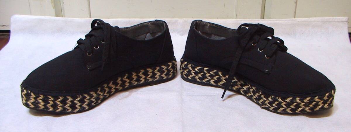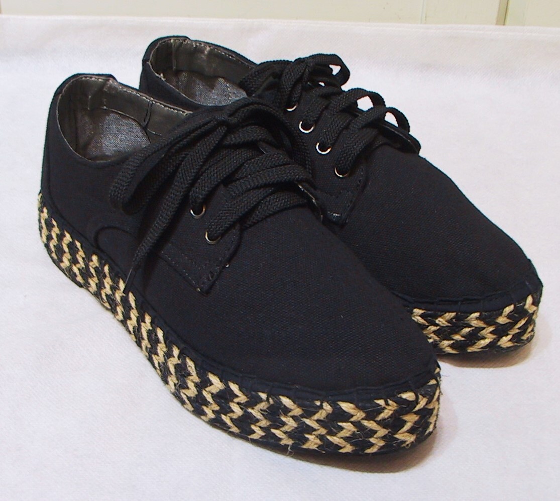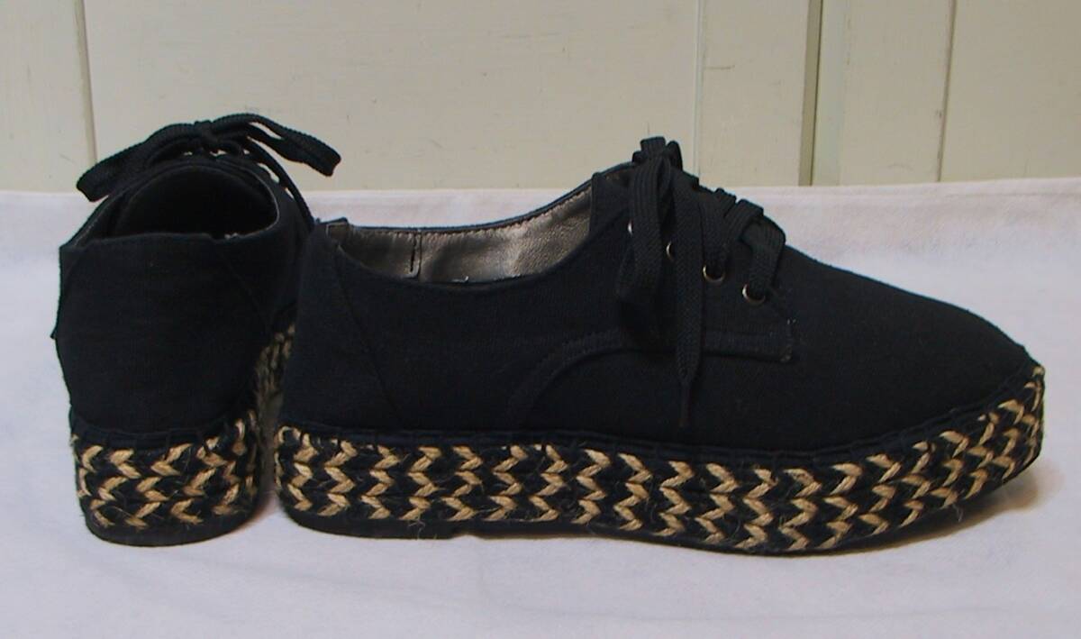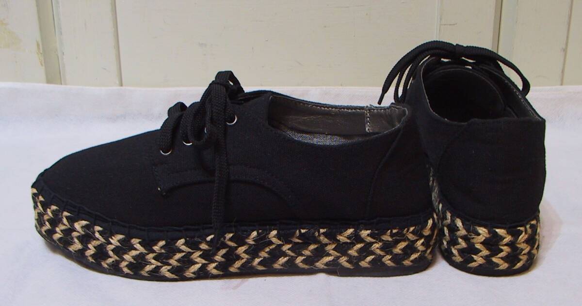 LIPSIM LOWRYS FARM/リプシム ローリーズファーム エスパドリーユ/スリッポン/ローファー、色はブラック、インソールクッション入りです。 1回使用の綺麗なお品です。サイズ: L(24~24.5㎝)、ソールの高さ3㎝、アウトソール最大幅805㎝、アウトソール長25.5㎝。送料は定形外920円、ゆうパック1150円(北海道1740円、沖縄1450円)になります。値下しました!
