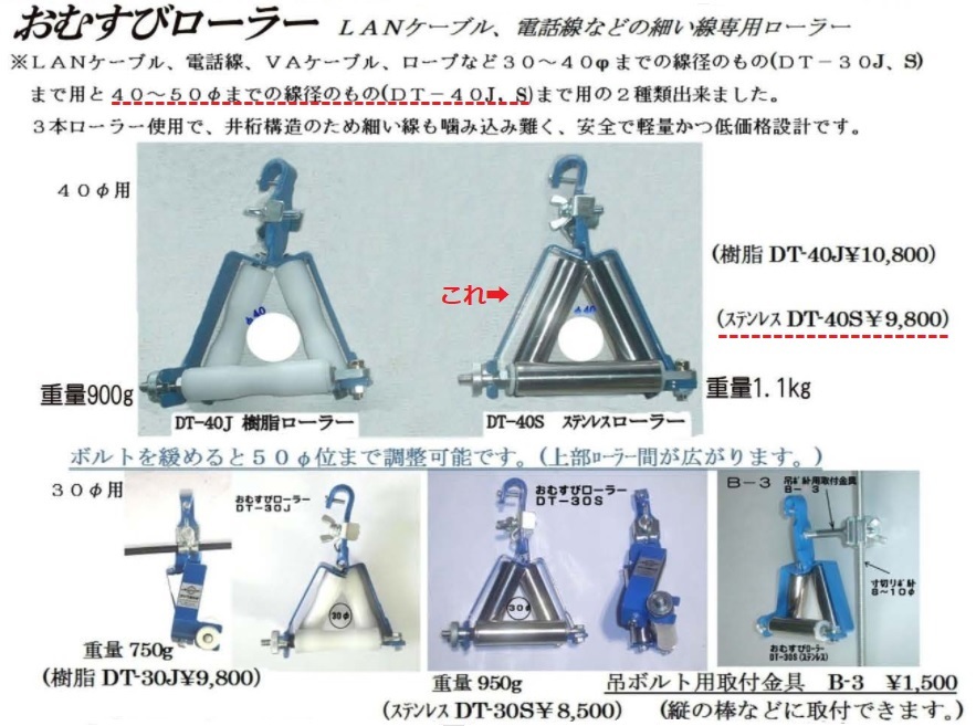 ダイワ製作所 おむすびローラー DT-40S  LANケーブル 電話線 VA線 ロープ等 細い線用