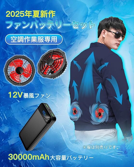 空調作業服用 ファンバッテリーセット【2025夏新定番&12V高出力&30000mAh大容量】バッテリー ファンセット 昇圧機能付き
