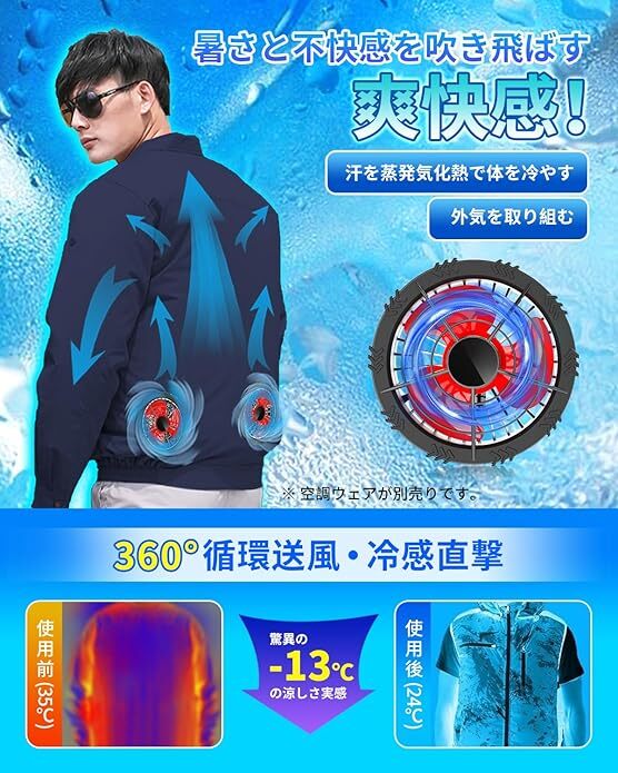 • 【12V空調作業服 ファンバッテリーセット】2025夏の最新作、12Vファンバッテリーセット登場!空調ウェアーに取り付けて、電源を入れると、暴風ファンは、新鮮で大量の空気の流れをつくり、作業中かいた汗を瞬間に蒸発させることができ、暖かく湿った空気を排出、爽快感を生み出し、圧倒的な涼しさを実現し、お手元の「空調ベスト」の性能を最大限発揮できます。パワーが安定で、風量が弱くならないでずっと87/秒で服内に暴風を送ります。39℃の猛暑日でも服内が猛暑知らず、楽にすごせます。