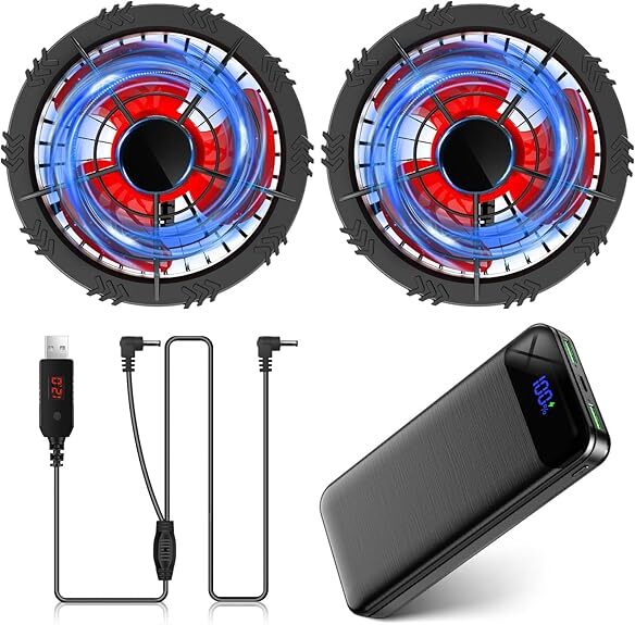 • 【風量4段階調整可能&USB給電式】ケーブルで4段階風量を調整可能です。モバイルバッテリーと接続し、ファンが回転します。スィッチを一回押すと、5V-7.4V-9V-12Vに切り替わります。お好みの風量(電圧)に調整されます。(出力電圧は±0.2Vの誤差がありますが、予めご了承下さいますようにお願い致します。)USB給電式ですので、専用バッテリー不要、急速充電モバイルバッテリー(PD/QC対応)を使用することで、利便性が大幅に向上します。従来のファンバッテリーセットに比べると、専用電池の故障を心配しなくて互換性が高いタイプです。強風力が欲しく、QC/PD対応できる急速充電モバイルバッテリーがあるまたは購入したい方々に最適です。(ご注意:QC3.0/PD対応できる急速充電モバイルバッテリーのみを使用します。)