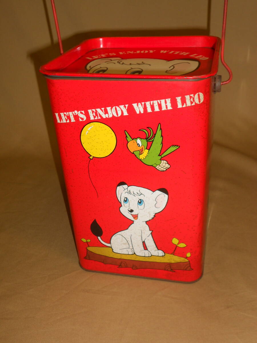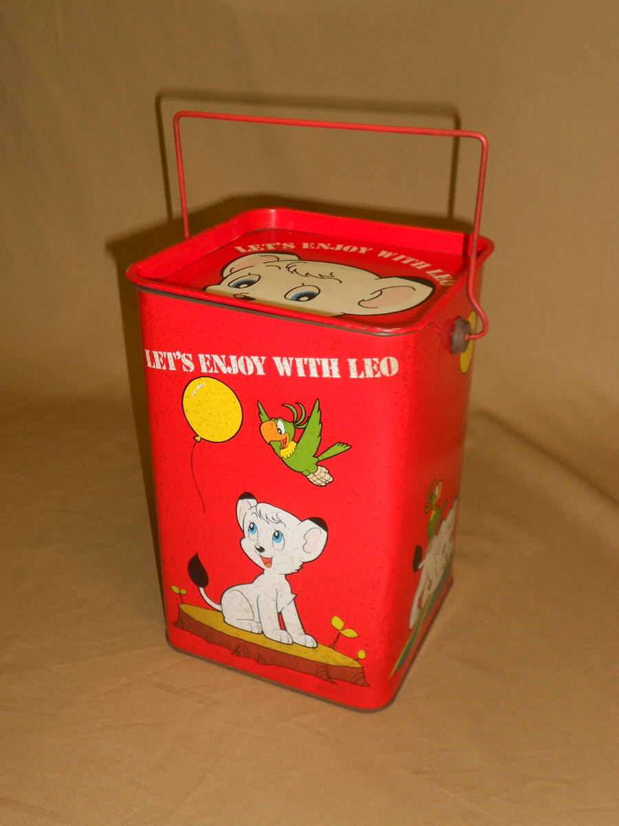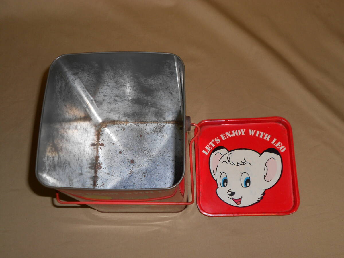 古い菓子缶★ジャングル大帝レオ・ブリキ缶・お菓子詰め合わせ・カバヤ★
