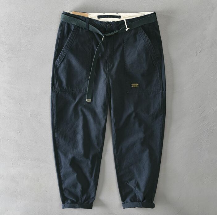 新入荷メンズカーゴパンツ ワイドパンツ チノパン コットンズボン 無地 ワークパンツ ロング カジュアルボトムス軍パンアウトドアネイビー