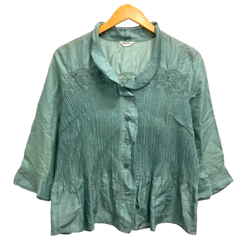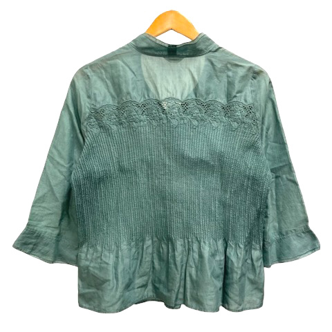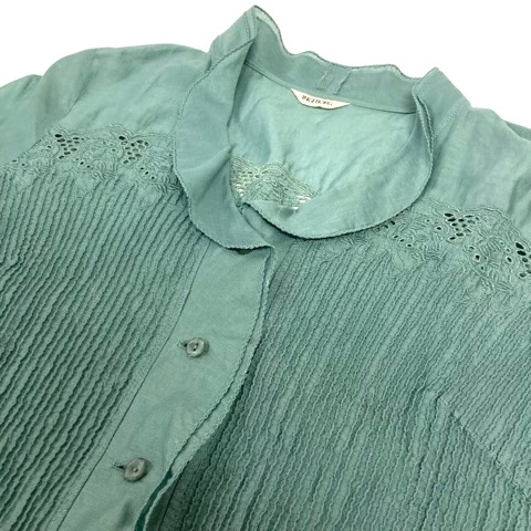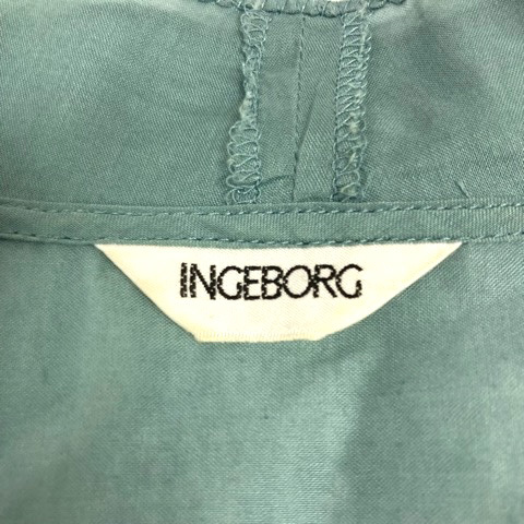 インゲボルグ INGEBORG シャツ ブラウス フレア シャーリング 刺繍 長袖 薄手 9 緑 エメラルドグリーン レディース