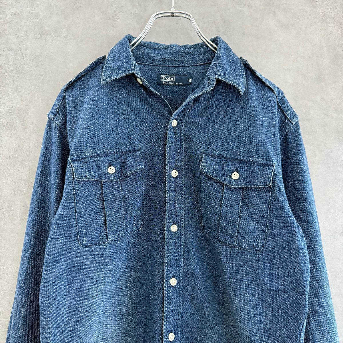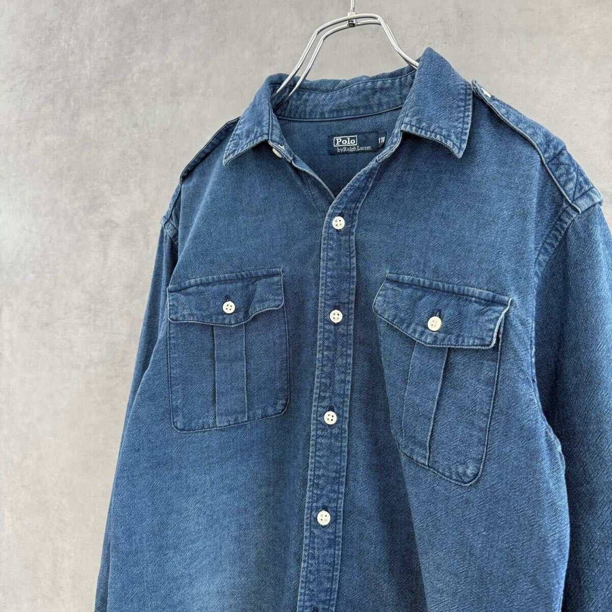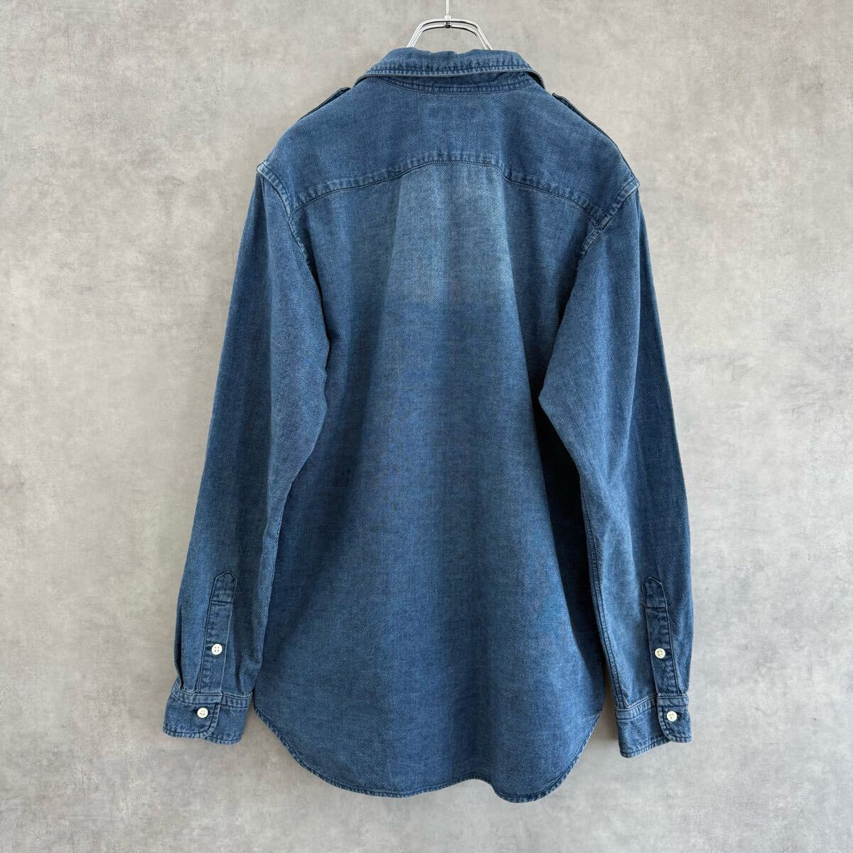 ゆったりとした大きめの作りのデニムシャツ、サイズ表記170