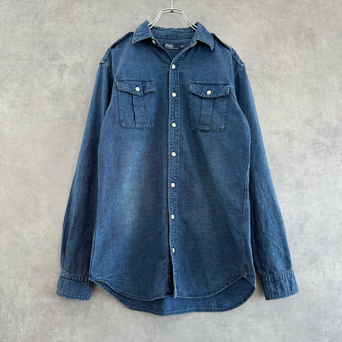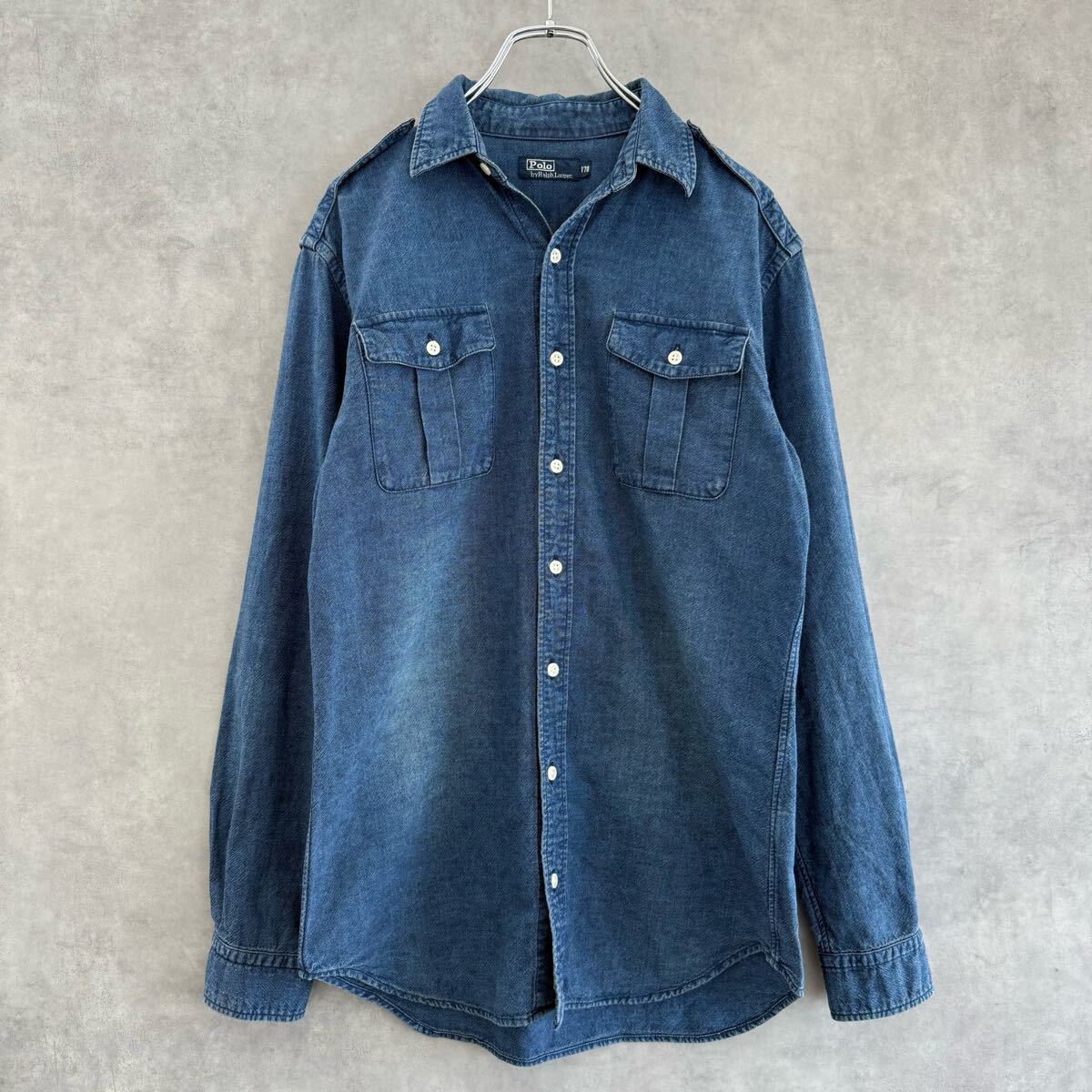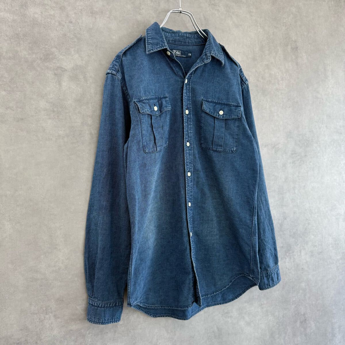 ゆったりとした大きめの作りのデニムシャツ、サイズ表記170