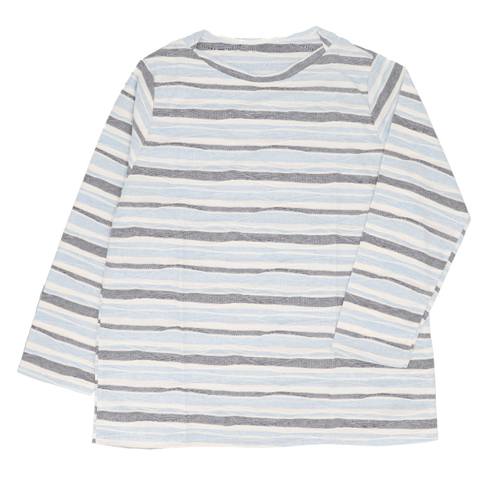 商品説明 | ・・春から夏までさらりと着られる綿混タックジャカードのボートネックプルオーバー ・特殊な紡績方法で彩りの良い杢調表現が特徴の「リバーエース」を使用して、色の重なりがきれいな表情豊かなタックジャカード ・一枚でも、インナーとしても活躍してくれるベーシックな7分袖のデザインで季節を越えて重宝するアイテム ・さらっとした綿混素材で着心地もやわらか |