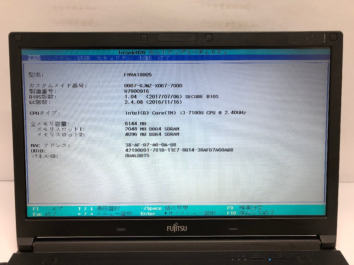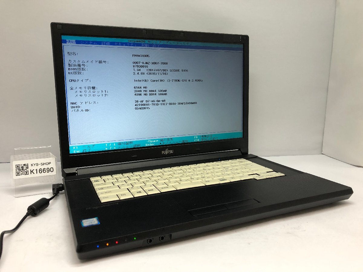 ジャンク/ FUJITSU FMVA18005 LIFEBOOK A577/P Intel Core i3-7100U メモリ6.14GB ストレージ無し 【K16690】