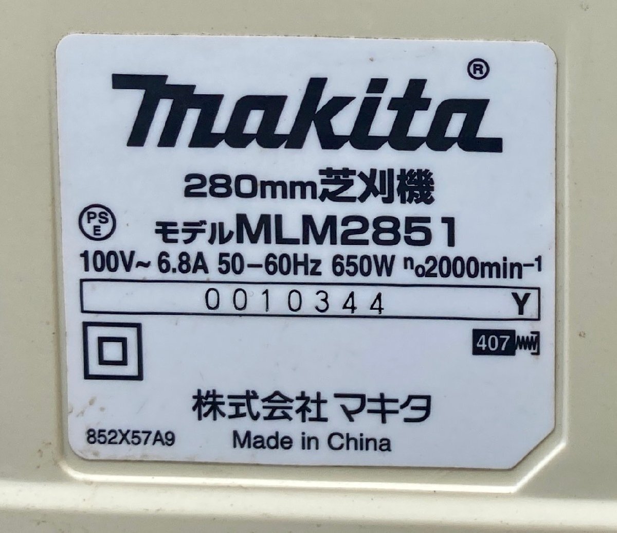 ◆【ヤフオク限定価格】着払い可能 香川県 中古 農機具 動作確認済み マキタ 280mm芝刈機 MLM2851 AC100V 延長コード付き