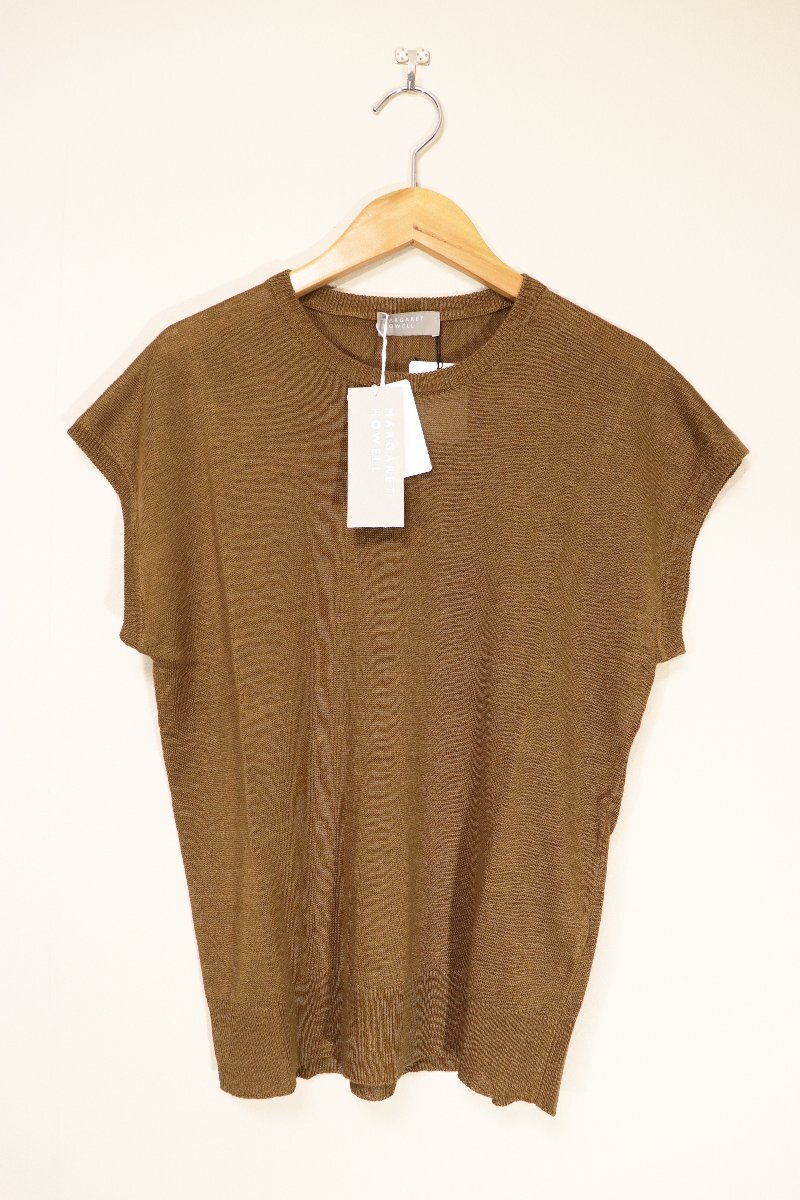 ★未使用★マーガレットハウエル/イタリア製/リネンニットプルオーバー:2/茶xz399