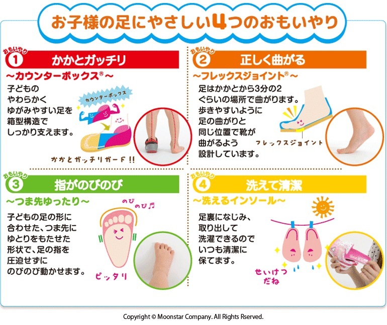 足の成長をサポートする機能を搭載し、公園遊びや通園、お出かけに活躍します。