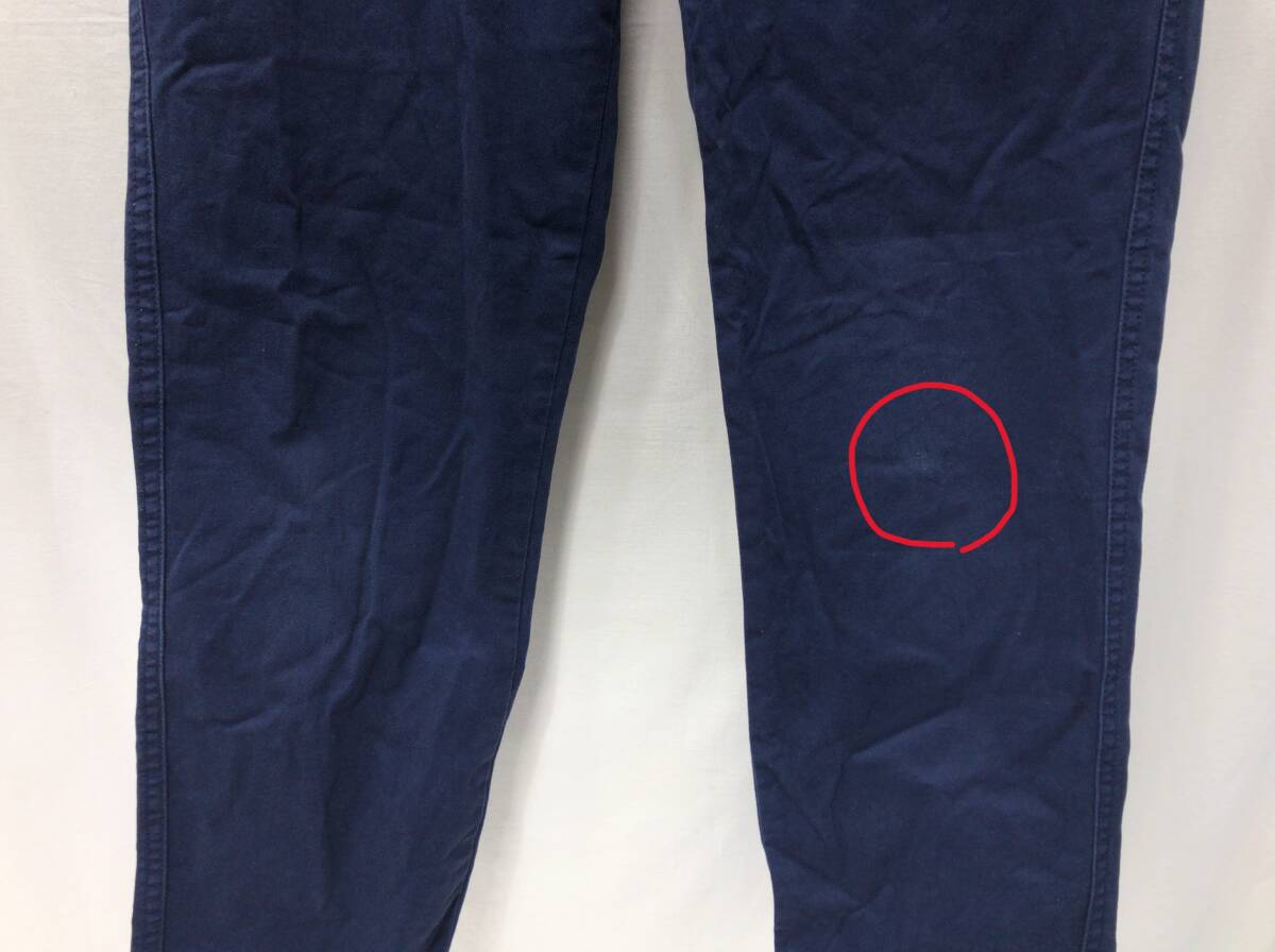 補足:左膝に薄っすらと色が薄くなっている部分あり。