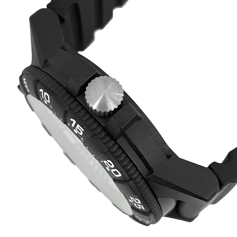 | 仕様 | カレンダー 逆回転防止ベゼル T25表記 ※ルミノックスのムーブメントの特徴と致しまして、秒針の歯車に遊びをもたせている為、ダイヤルと秒針に若干のズレがある場合がございます。衝撃を吸収する為の仕様となっており不良ではございません。 |