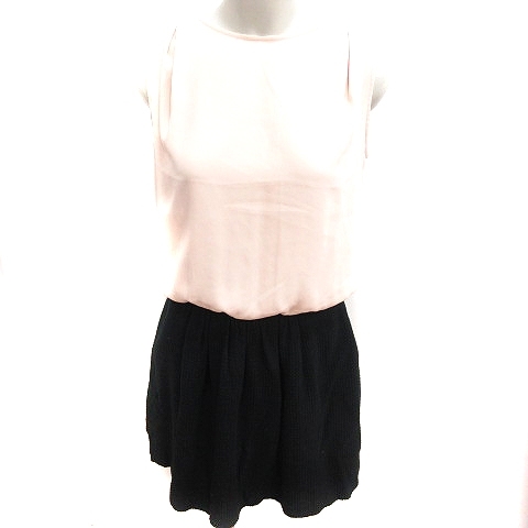 イエナ IENA ワンピース タイト ひざ丈 ノースリーブ 麻混 リネン混 36 ピンク 黒 ブラック /RT レディース