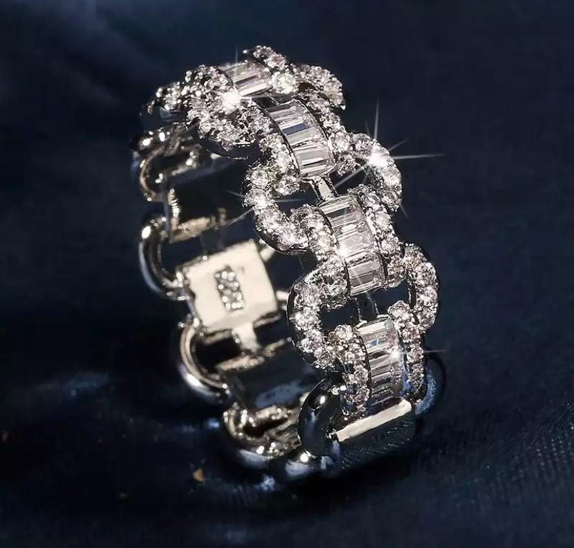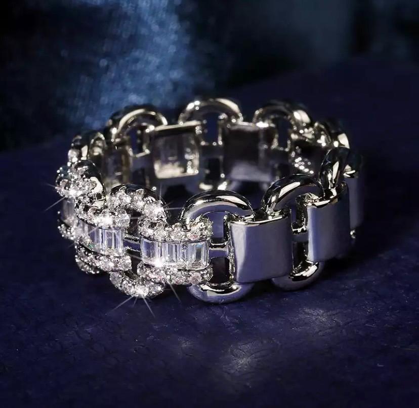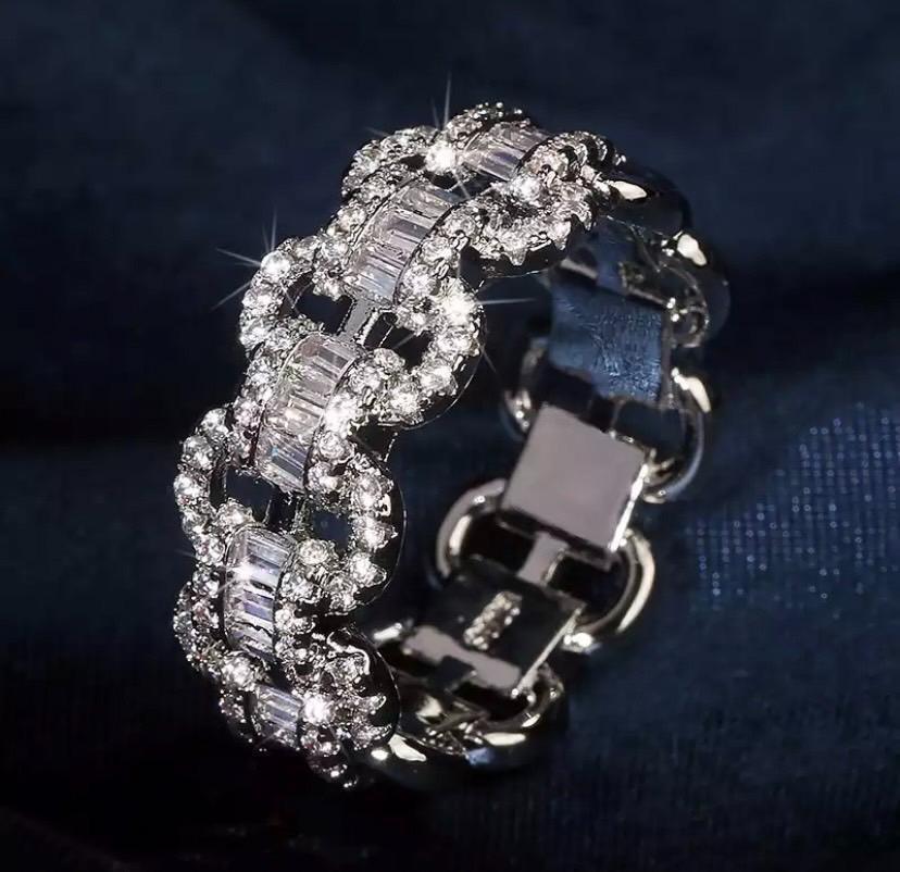 598 シルバー アンカーチェーン リング s925 czダイヤモンド 真珠 韓国 ジュエリー アクセサリー 結婚式 男女兼用 ストーン カジュアル