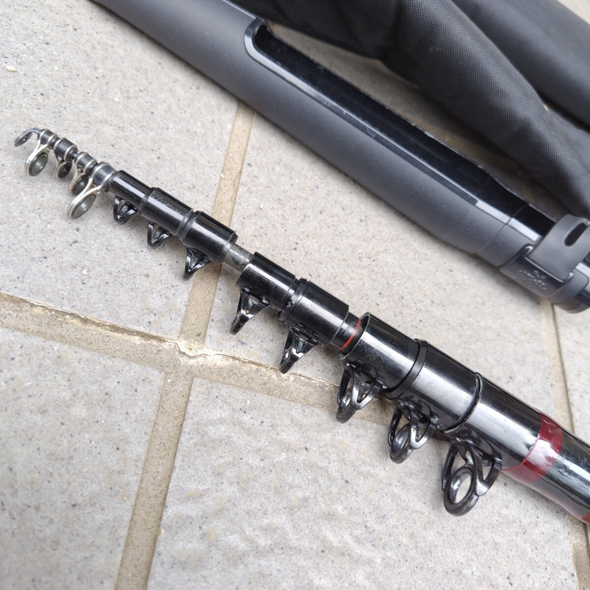 穂先から4〜5cm詰めが有ります。トップガイドは3口ガイドです。5個のガイド全て純正では有りません。