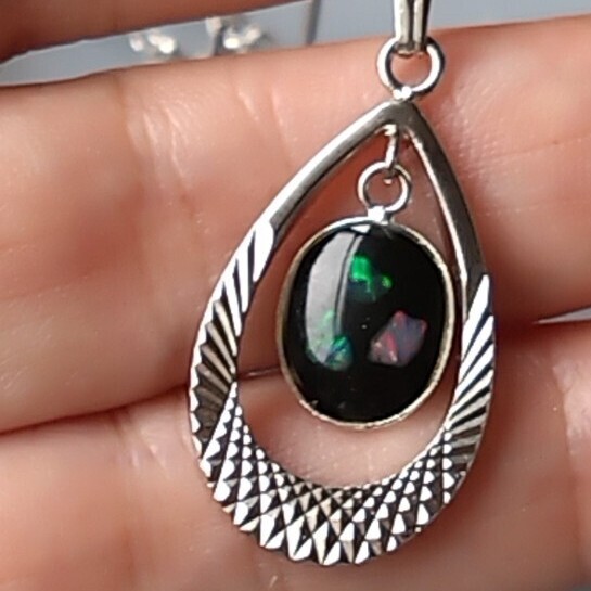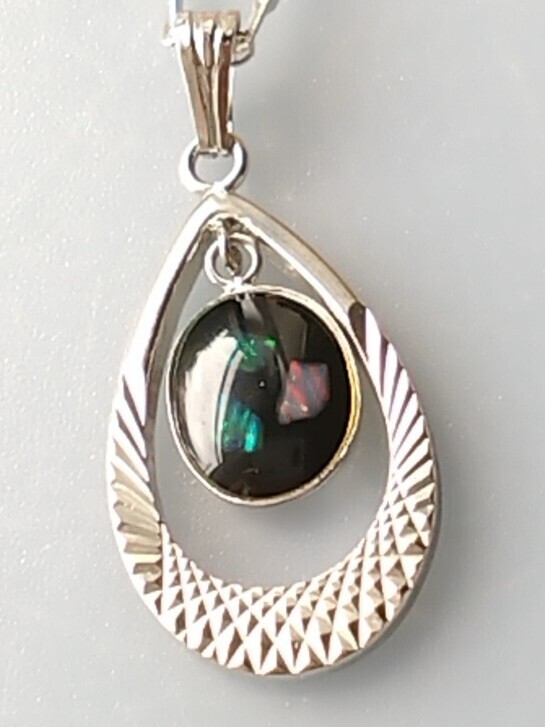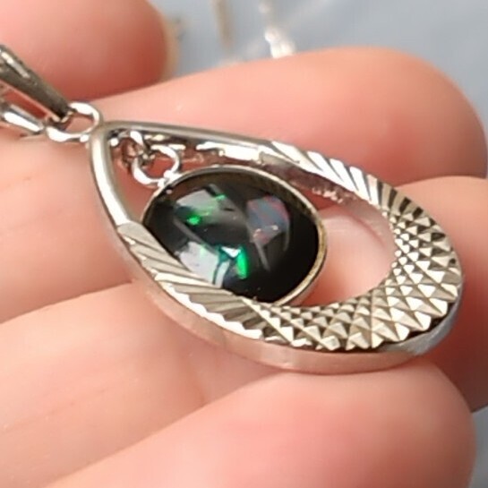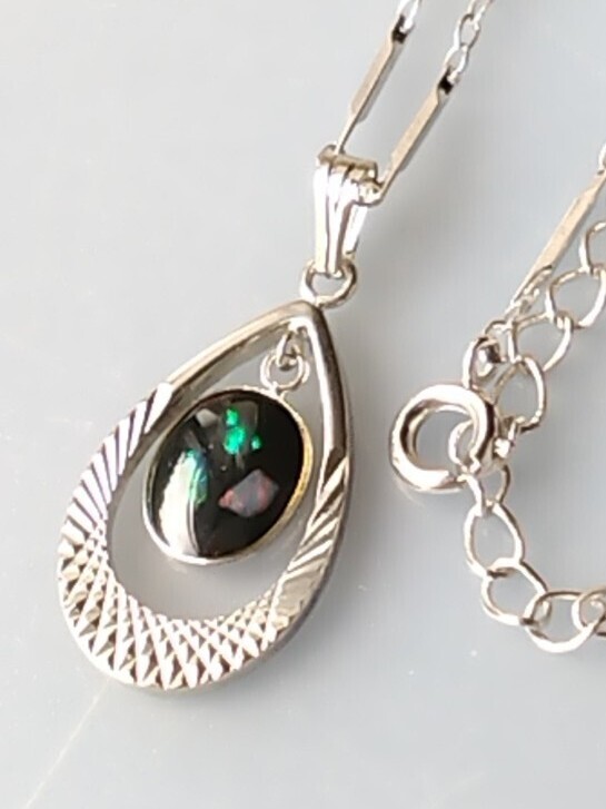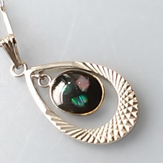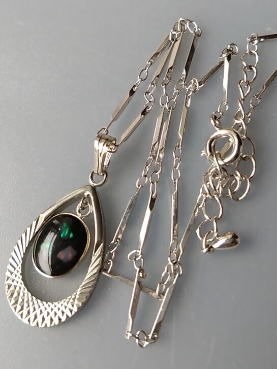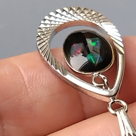 ドロップ型のしっかりした台座にオパールが施されたヴィンテージネックレスです。