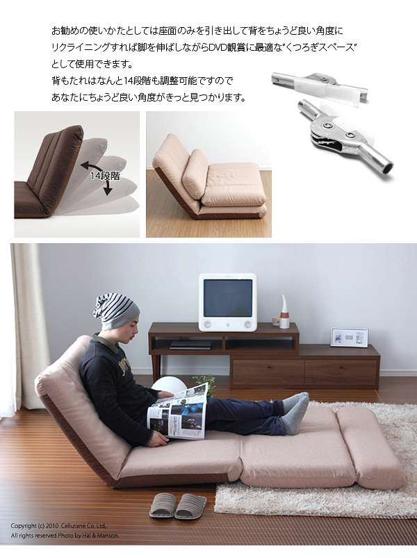 | 商品説明 | 座る、くつろぐ、眠るがこれ1台でかなう。 【仕様】 ■サイズ:約幅1090×奥行810~2010×高さ130~620mm ■材質:[構造部材]スチールパイプ [クッション材]ウレタンフォーム [生地]布製(ポリエステル100%) ■機能:背もたれ14段階リクライニング機能付 ■梱包サイズ:約1250×280×110mm ■生産国:日本 ■出荷タイミング:約1週間でのお届けになります。 ※ご注文をいただいてからひとつひとつ丁寧に作っております。 |