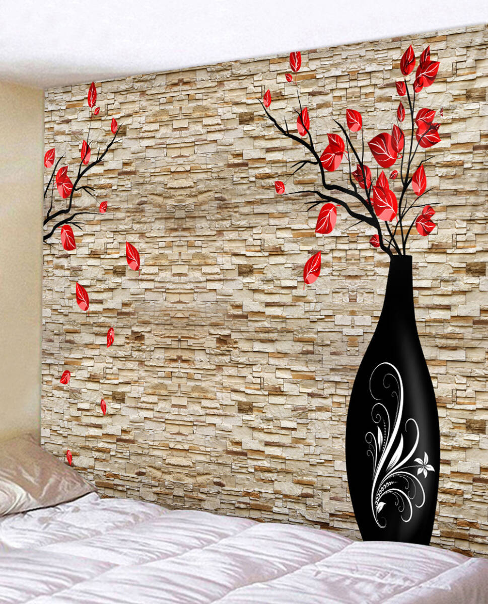 タペストリー 壁飾り 壁掛け装飾布 布ポスター 部屋飾り 背景布 インテリア カーテン 石壁と花瓶 150x130cm
