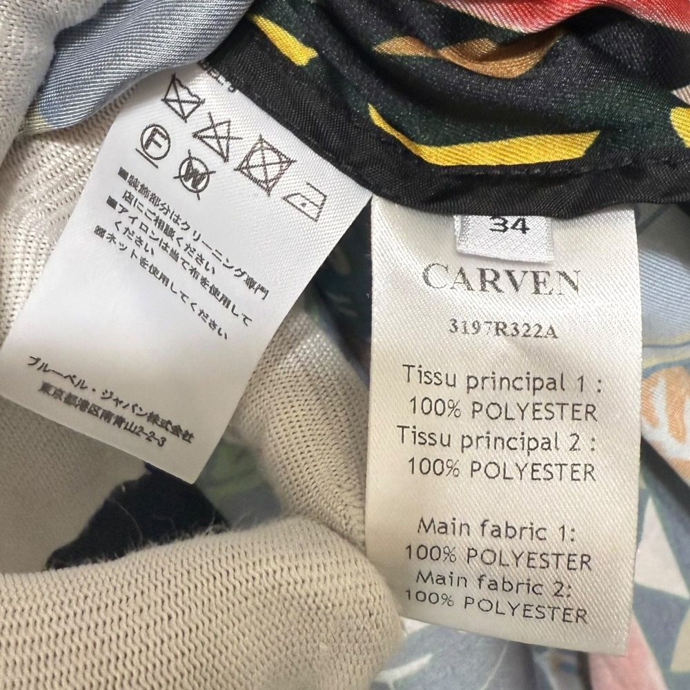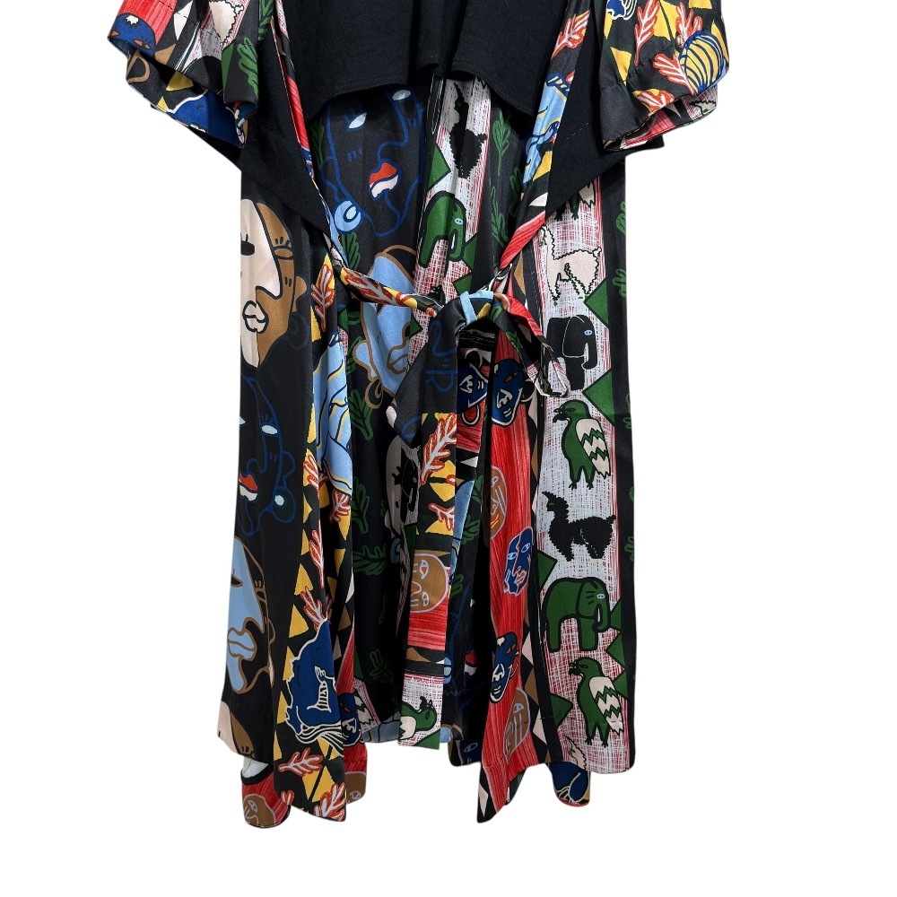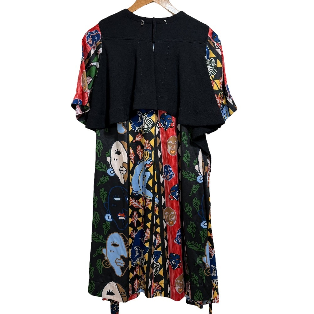 商品名:Carven カルヴェン アートプリント 半袖 ひざ丈 デザインワンピース サイズ34 ブラック