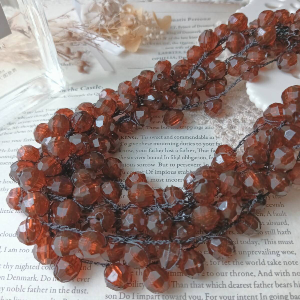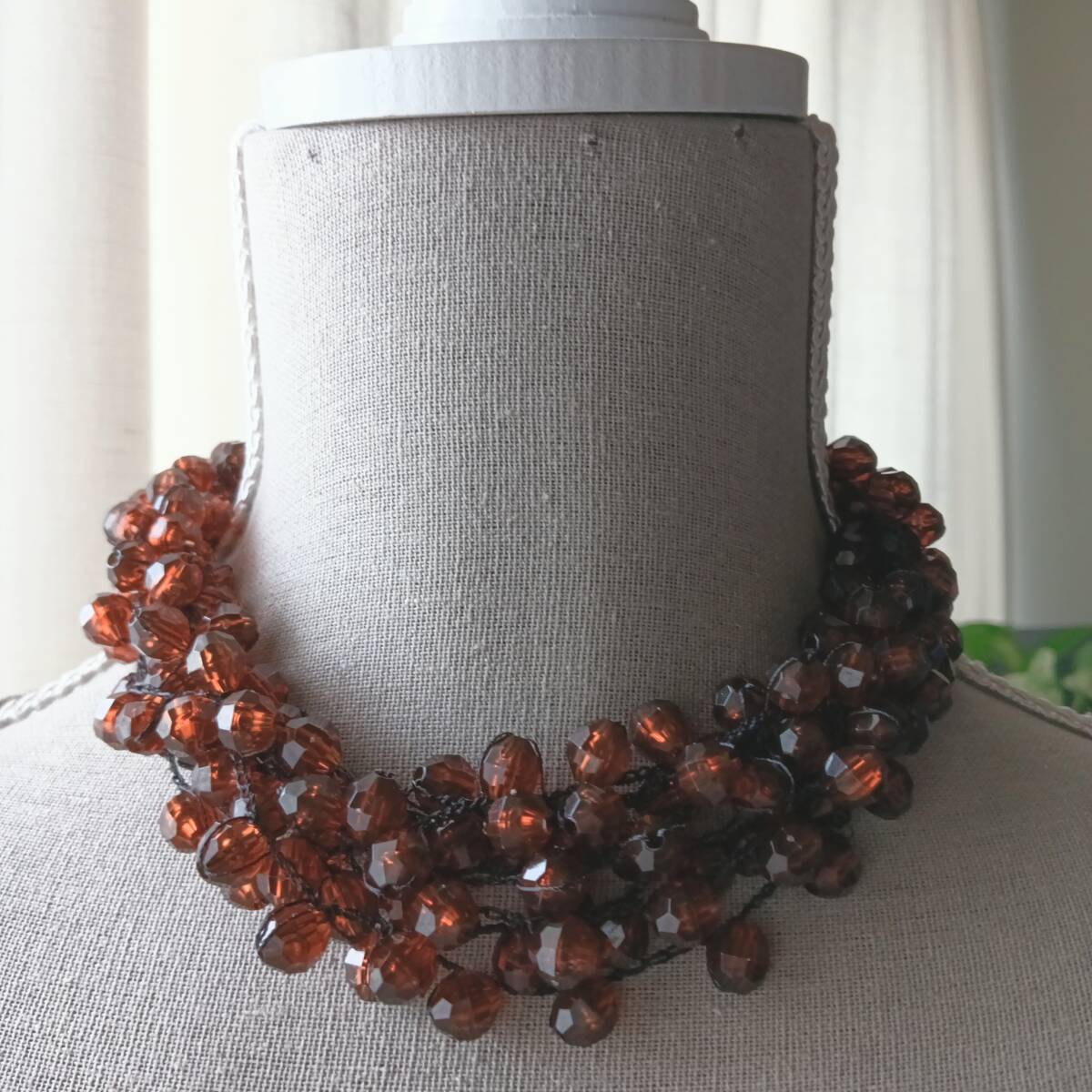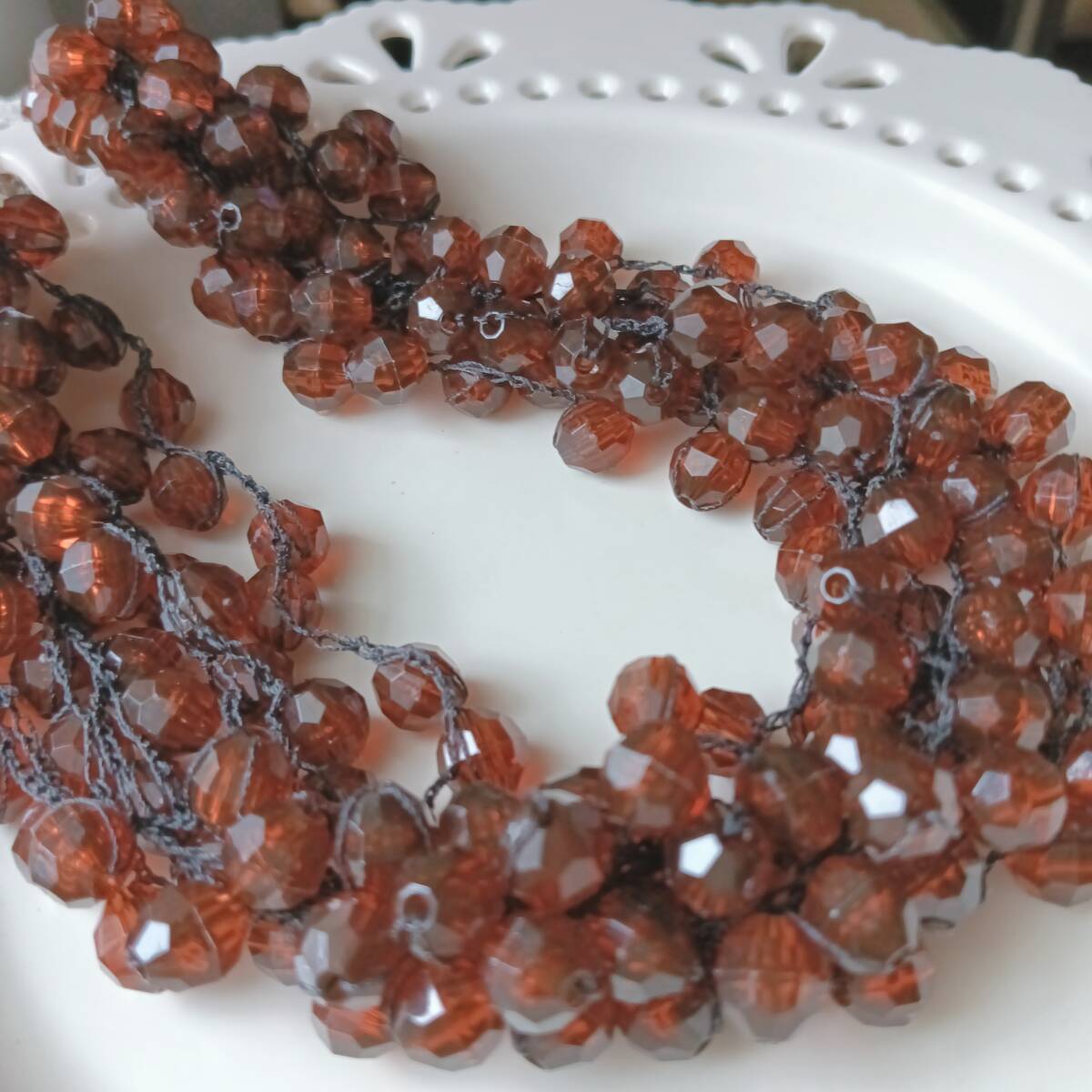 ヴィンテージネックレス ショート ビーズ クリルビーズ ブラウン 茶 マグネット 美品☆vintage jewelry accessoriesR0640