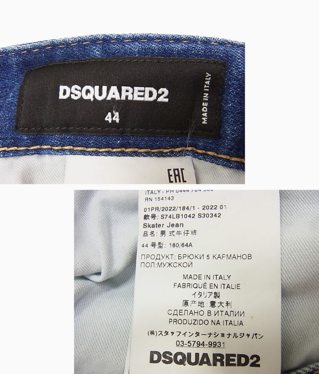 美品 定価86,900円 22s◇DSQUARED2 SKATER JEANS S74LB1042 ダメージ加工 ジーンズ ボタンフライスリム ミッドライズ ディースクエアード