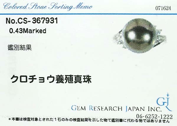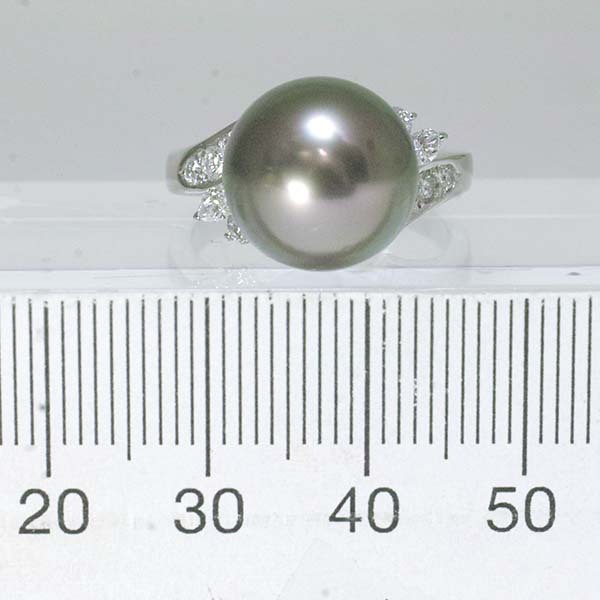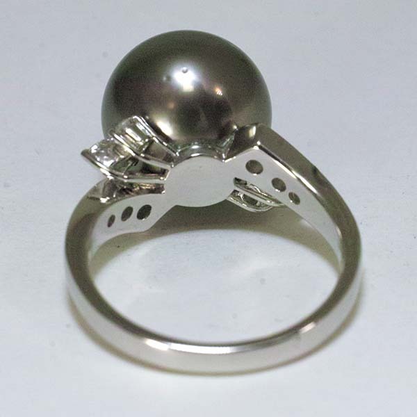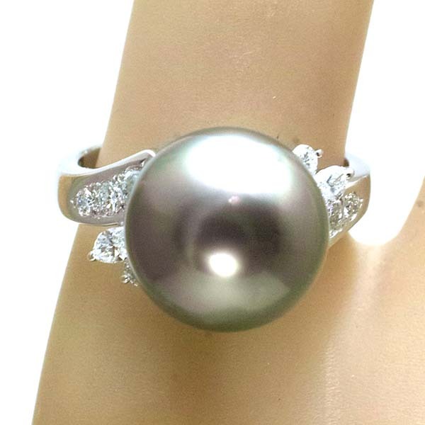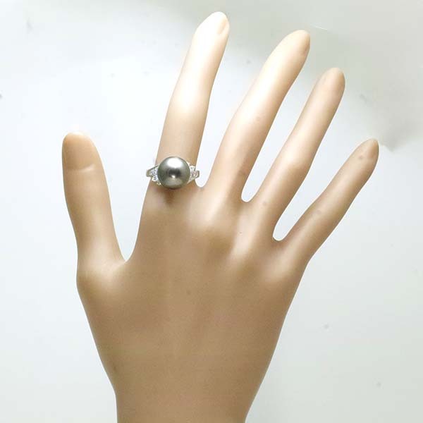 ブラックパールにダイヤを添えたタサキのプラチナ製ファッションリング。