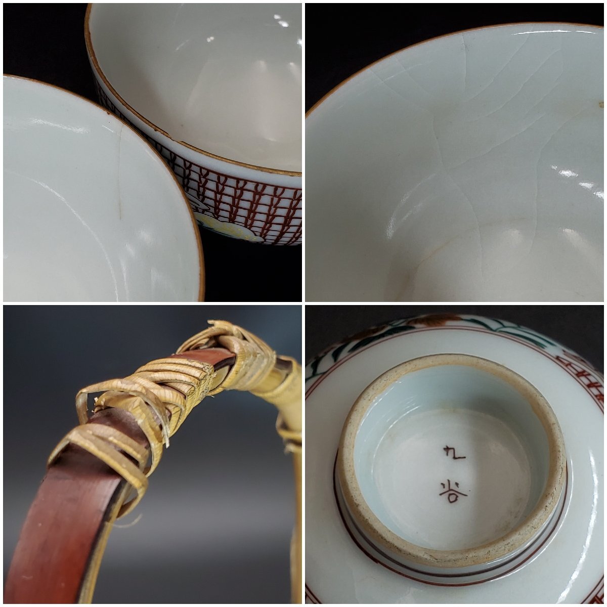 【商品説明】:全体的に使用・保管によるスレ傷や汚れがございます。茶碗7客中2客にニュウ・1客にホツがございます。持ち手部分に傷みあり。写真10枚目でダメージをご確認いただき十分ご納得の上で入札をお願いいたします。