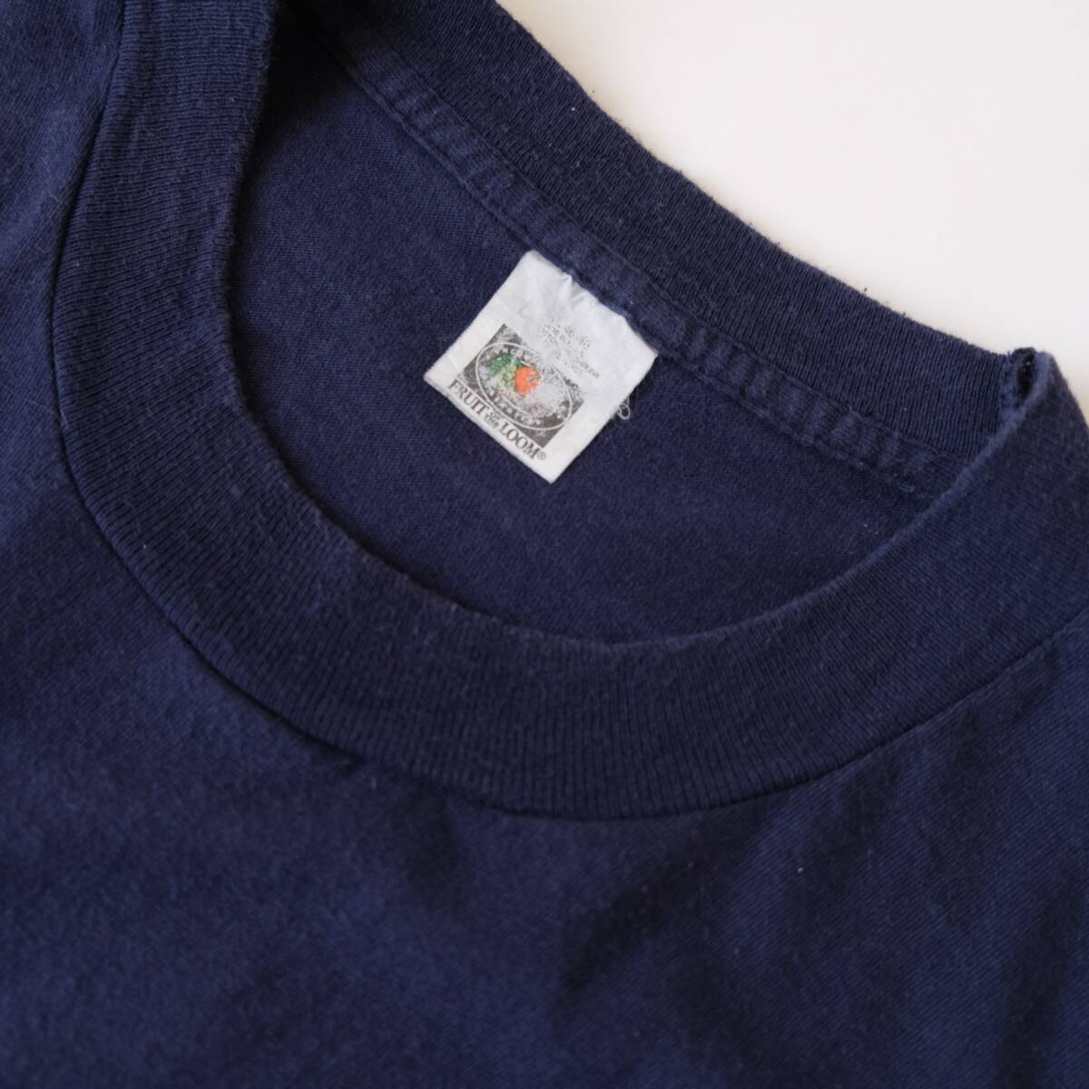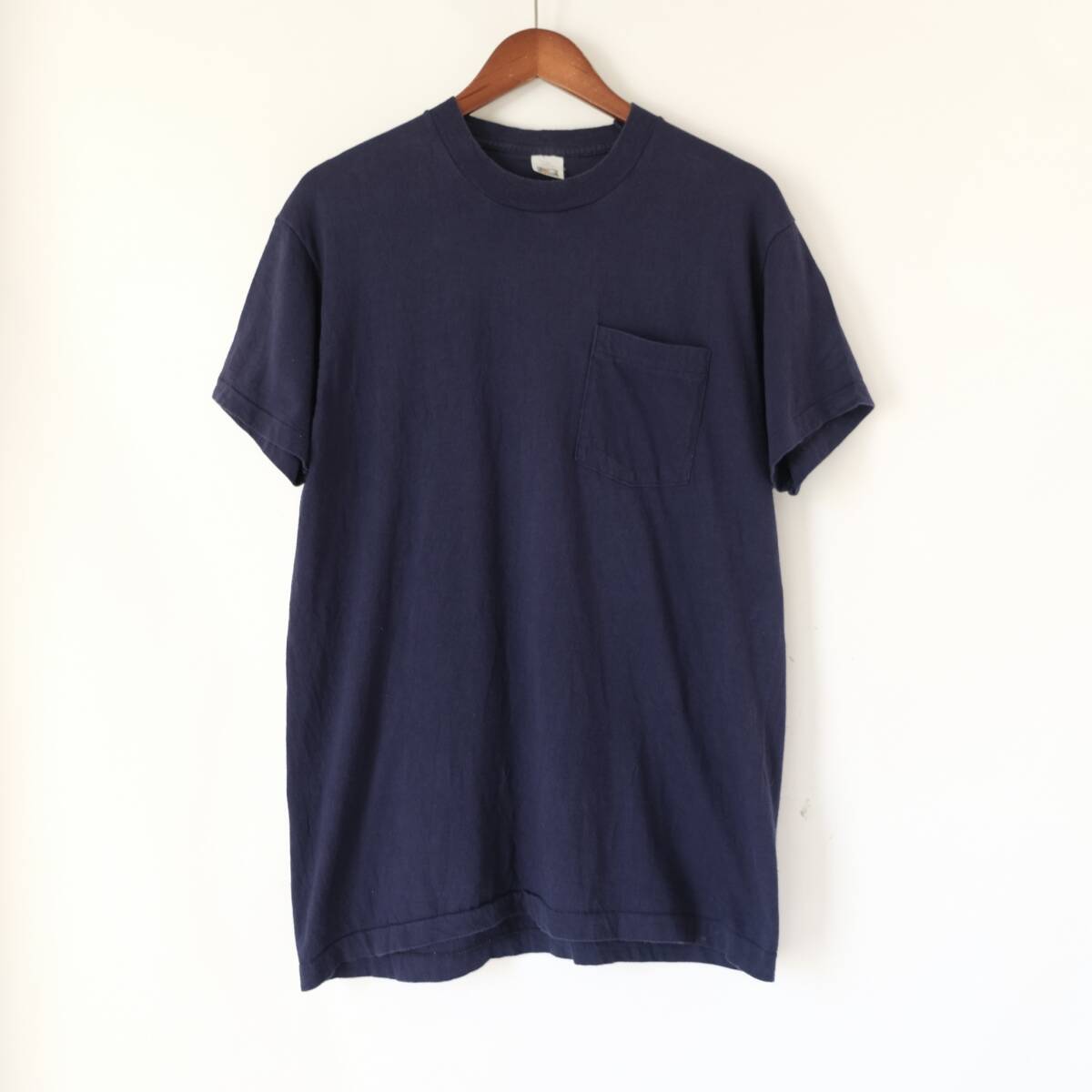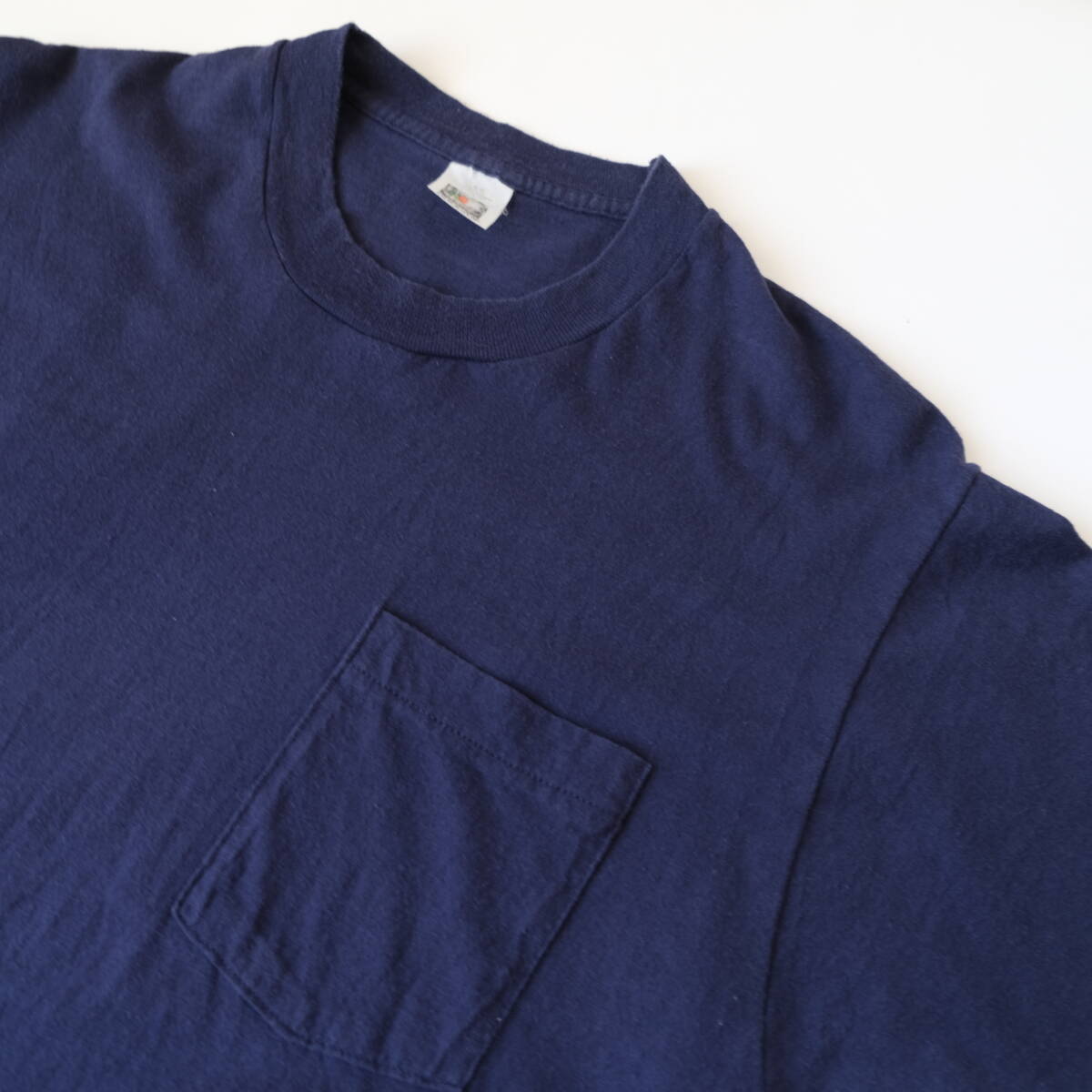 80s90s【 FRUIT OF THE LOOM 】フルーツオブザルーム ビンテージ USA製 無地ポケットTシャツ / ネイビー 紺 / XL / ポケT 耳付き