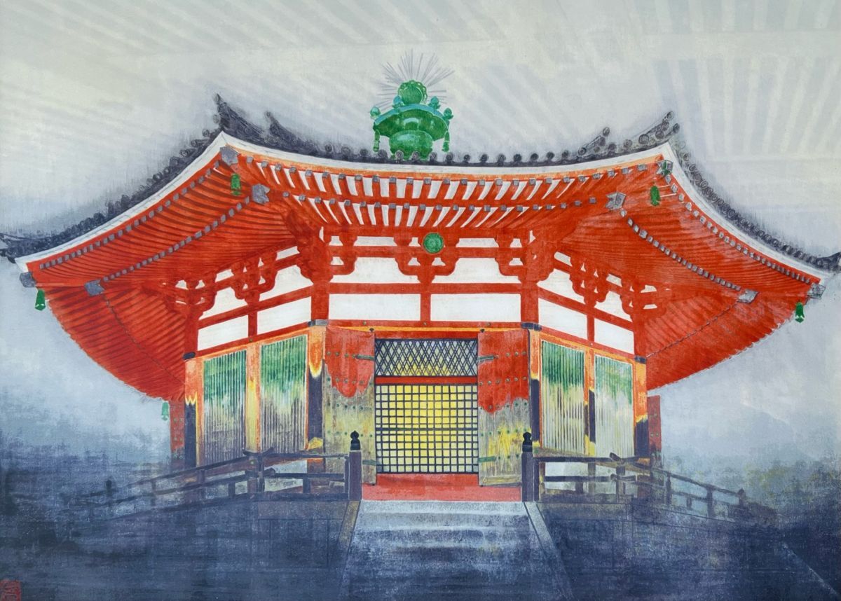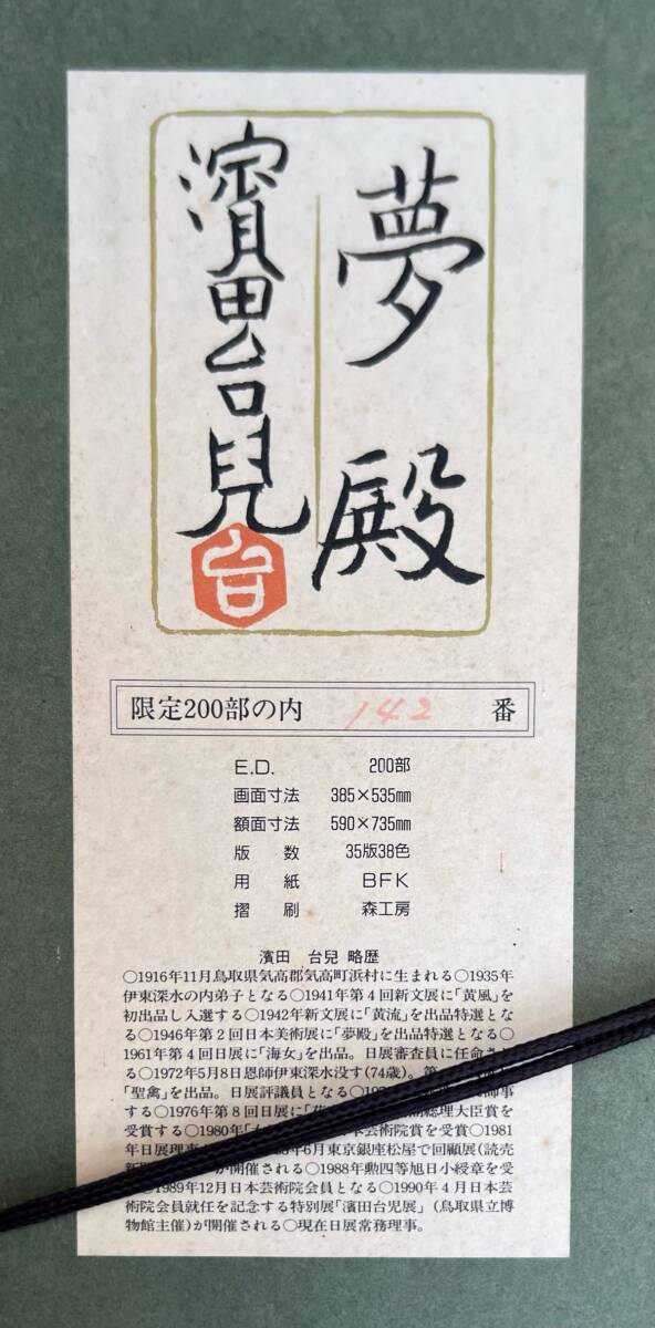 真作『濱田(浜田)台児 夢殿 リトグラフ 版画 142/200』 額装 鳥取県出身画家 真作 参考価格:25万円 38.5 × 58.5 cm