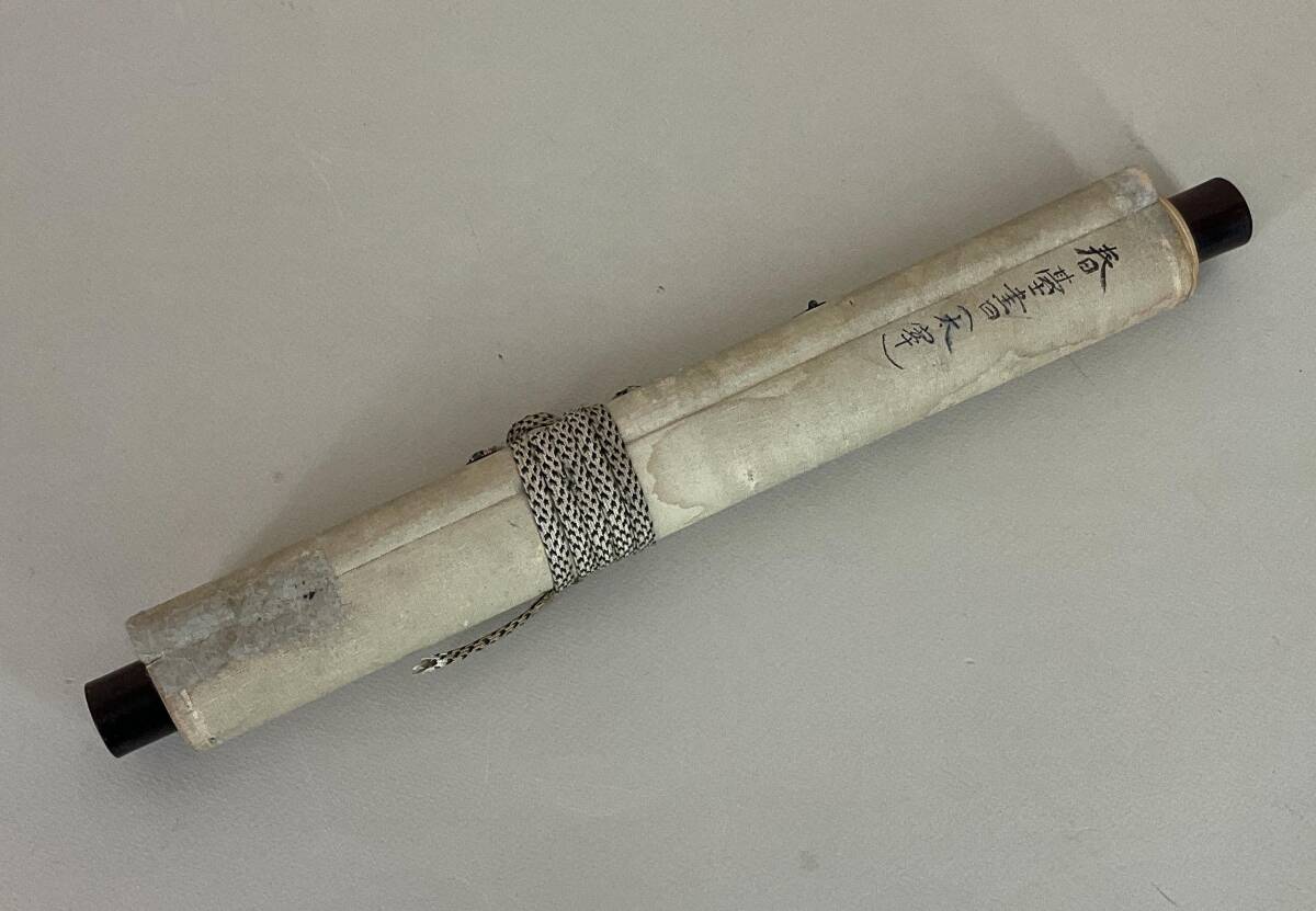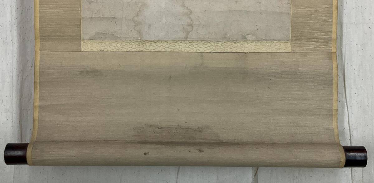 古い掛け軸は軸先を固定している接着剤が弱り、輸送途中の衝撃で軸先が外れてしまう場合がございます。