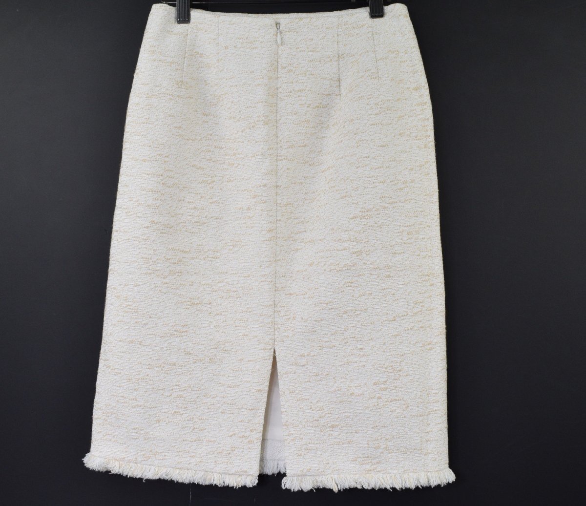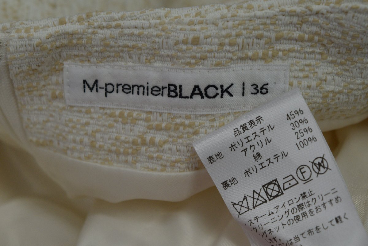 5000-KA00171★M-PREMIER BLACK エムプルミエ ブラック★ホワイトベージュMIXツィードタイトスカート 36 通勤 春夏秋