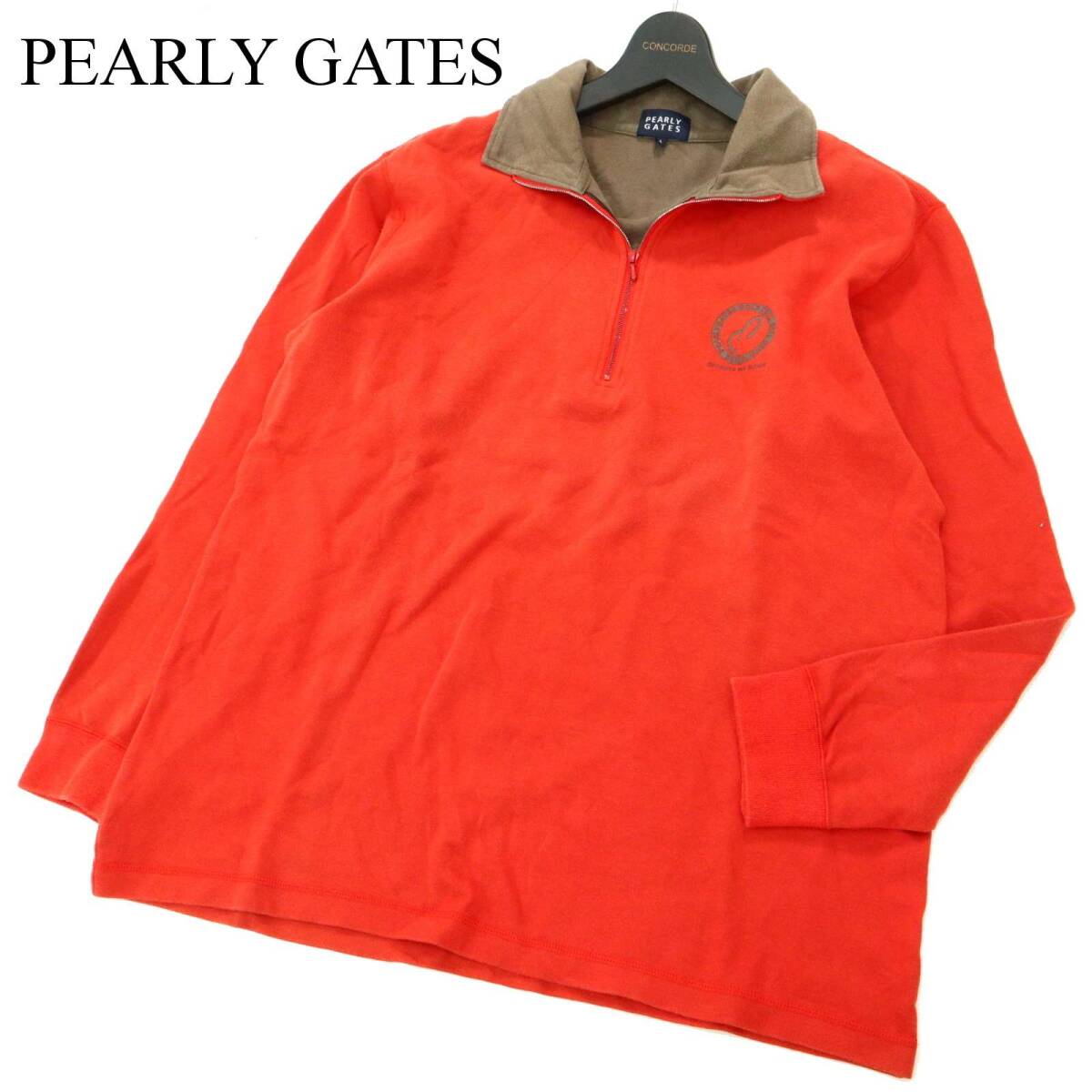 PEARLY GATES パーリーゲイツ 通年 ロゴ★ 長袖 ハーフジップ トレーナー シャツ Sz.4 メンズ 日本製