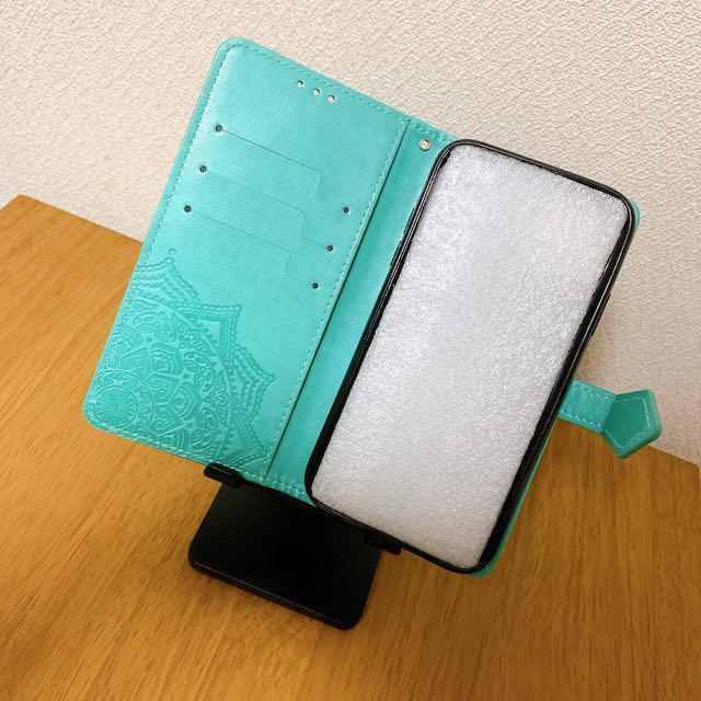 エンボス加工スマホケース 手帳型 iPhone11 グリーン