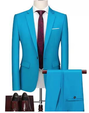 フォーマルスーツ 2 点セット男性の結婚式のパーティードレスコートとパンツビッグサイズ Terno Masculino カラー:Sea blue