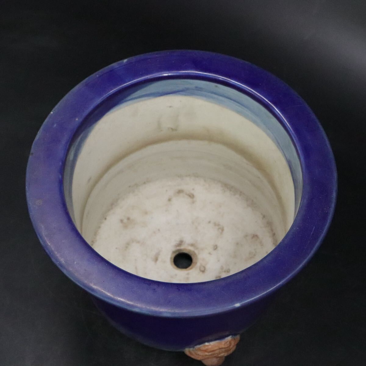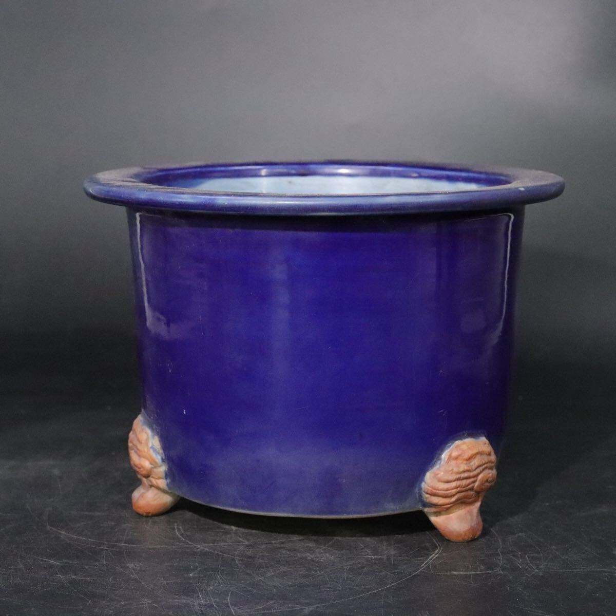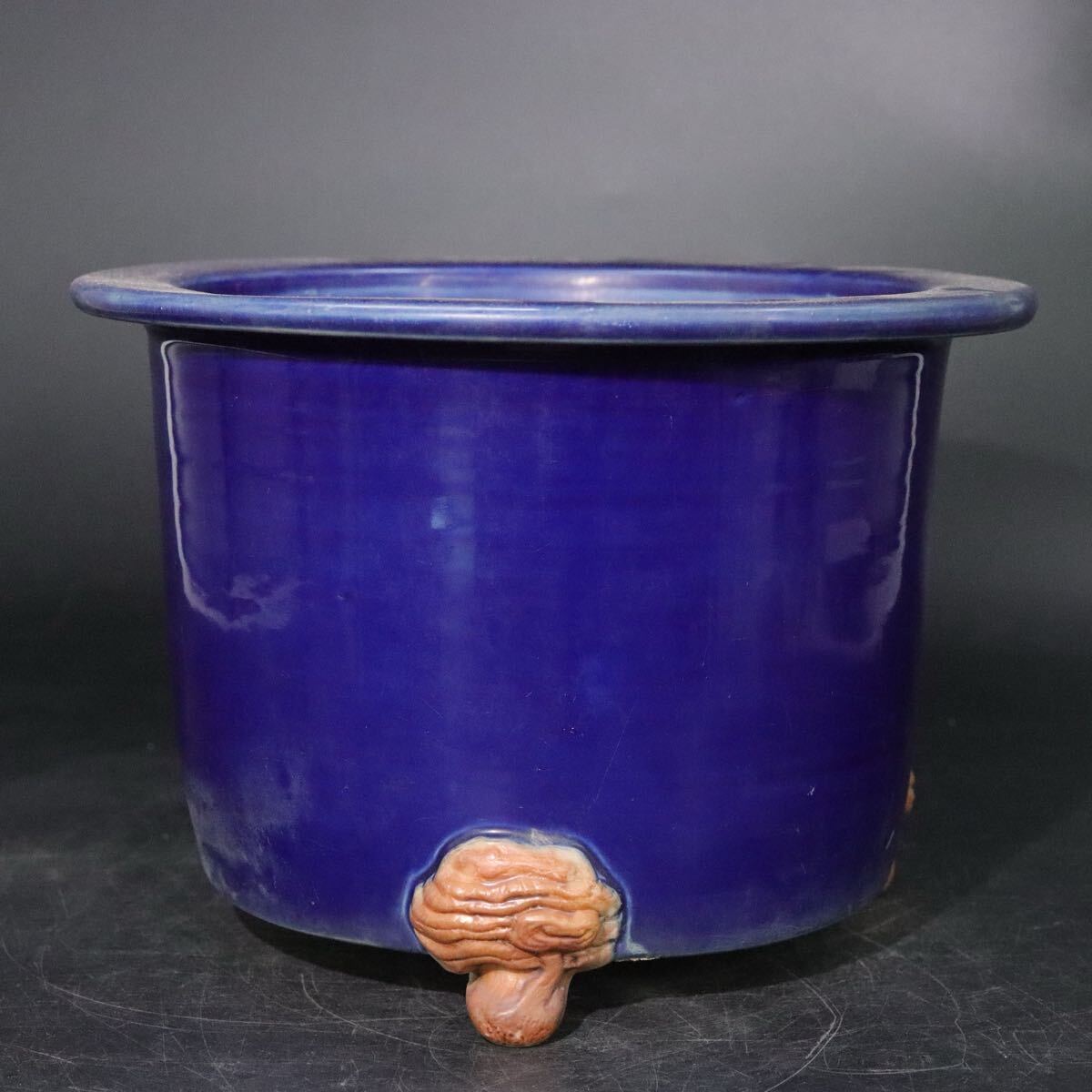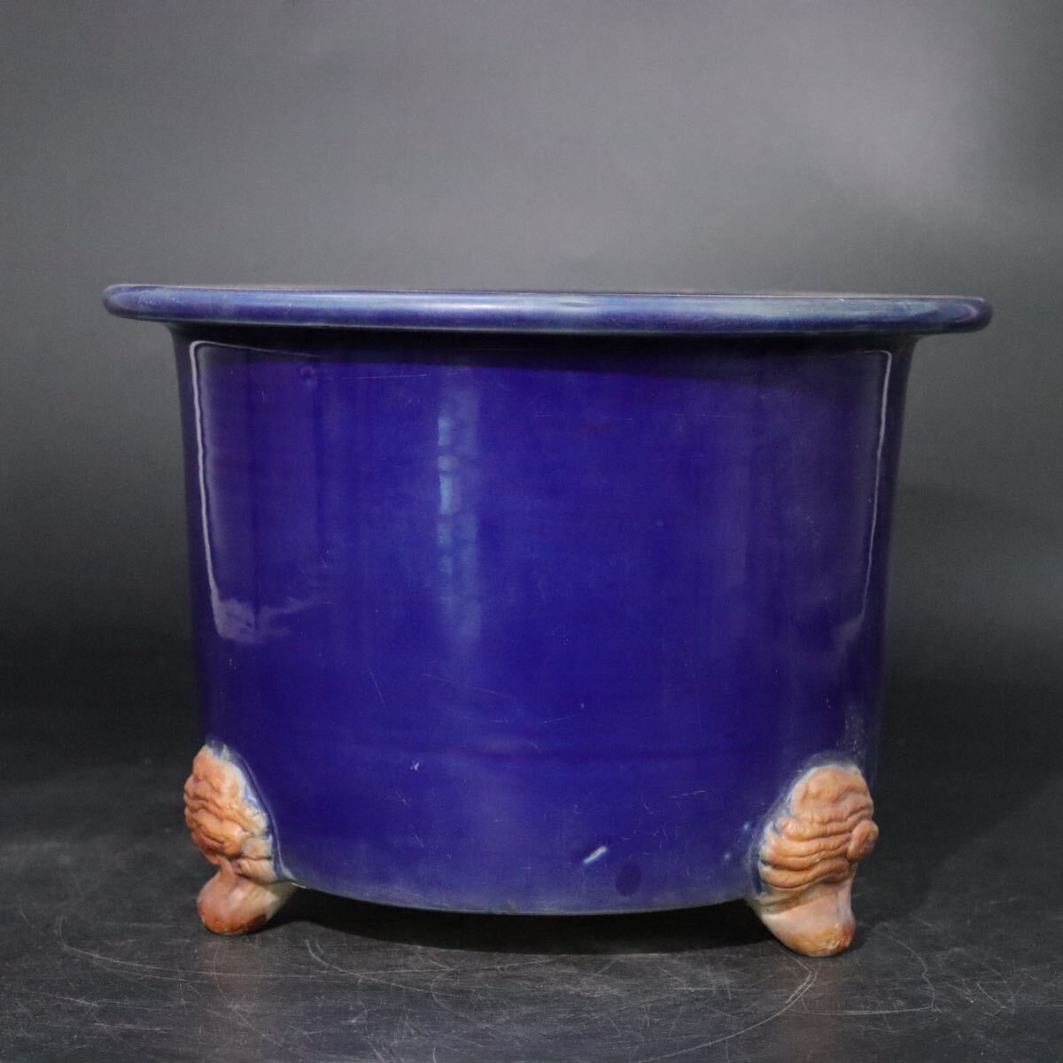 | 時代 瑠璃釉 獅子 三足 盆栽鉢 植木鉢 / 中国美術 瑠璃 青釉 祭藍釉 検索: 鈞窯 .B517 |