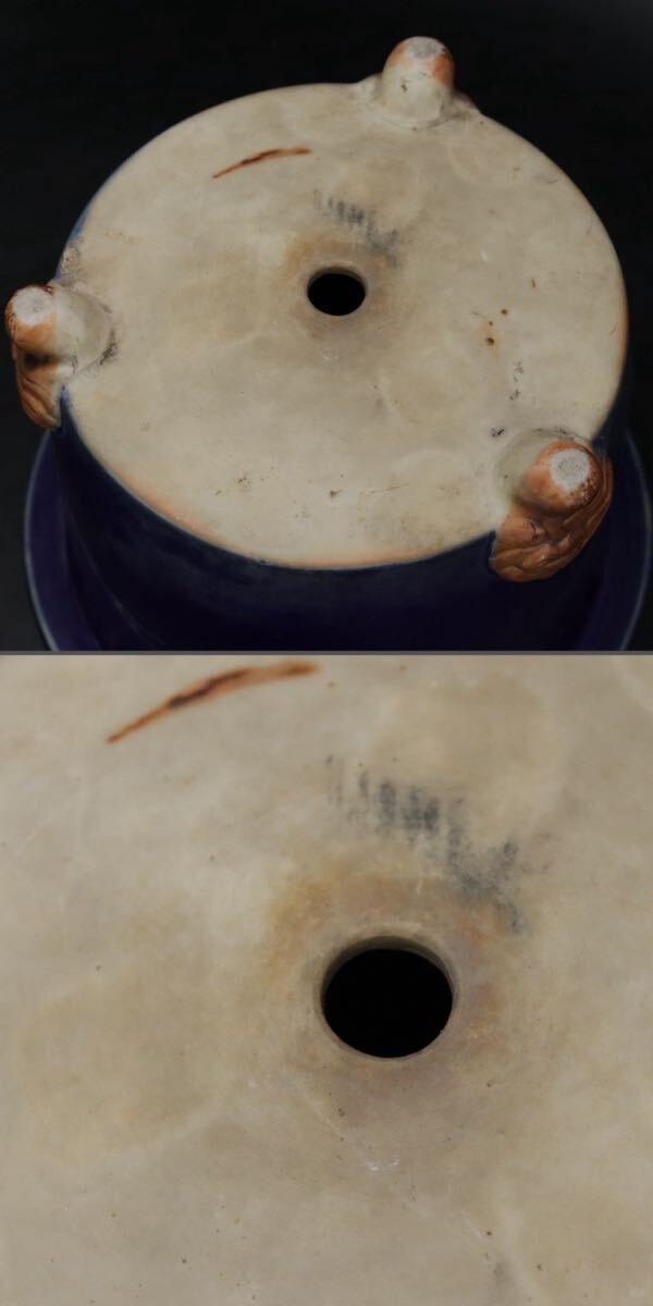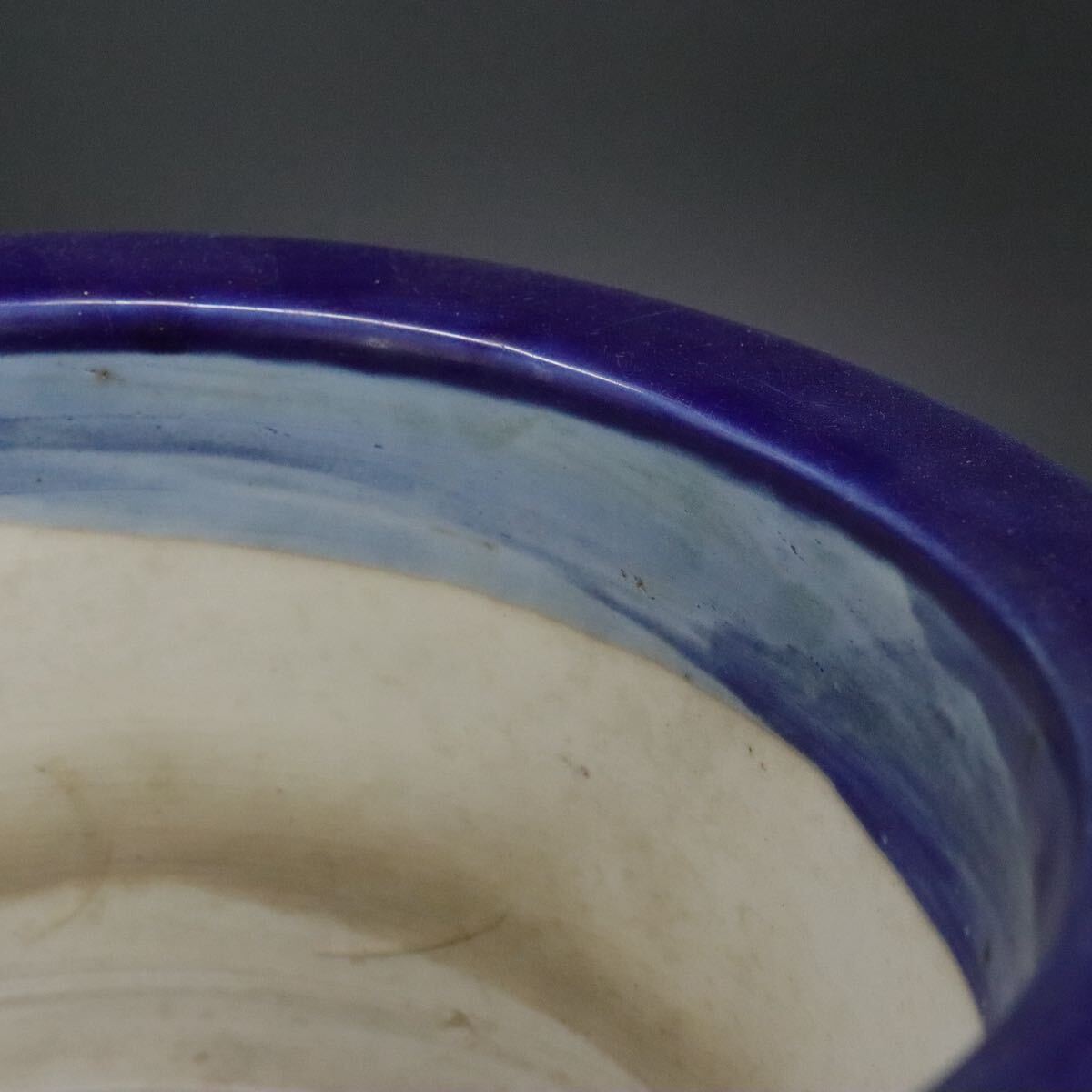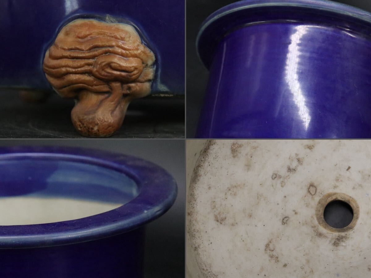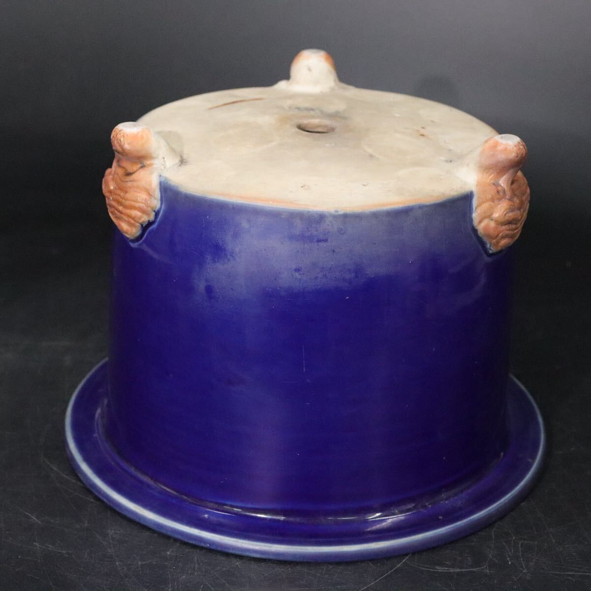 | 時代 瑠璃釉 獅子 三足 盆栽鉢 植木鉢 / 中国美術 瑠璃 青釉 祭藍釉 検索: 鈞窯 .B517 |