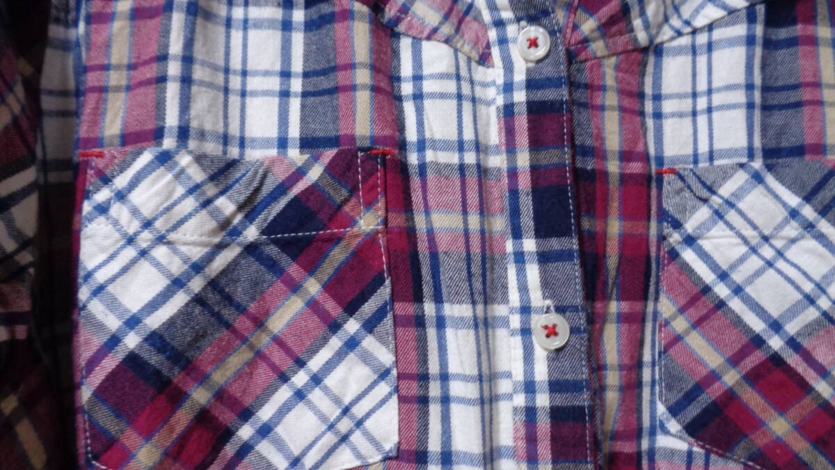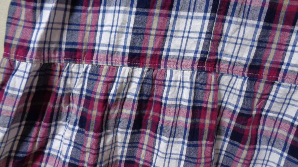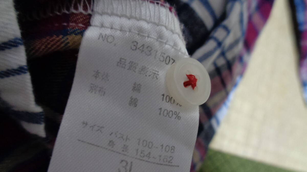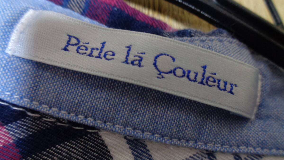 送料込み・Perle la Couleur 綿100% チェック柄 7分袖シャツ 裾フリル 大きいサイズ 3L