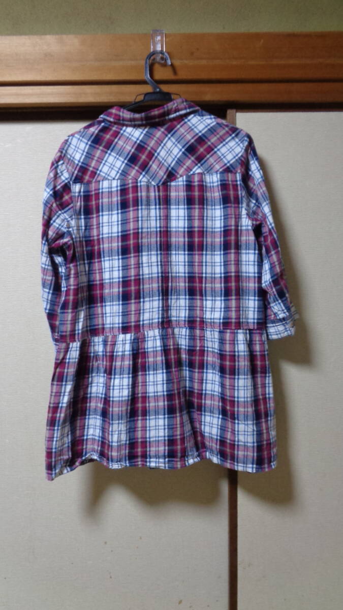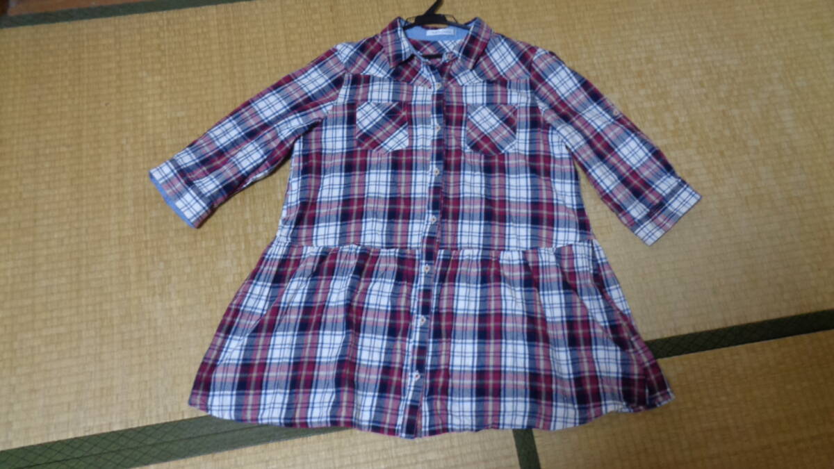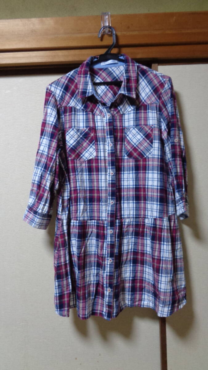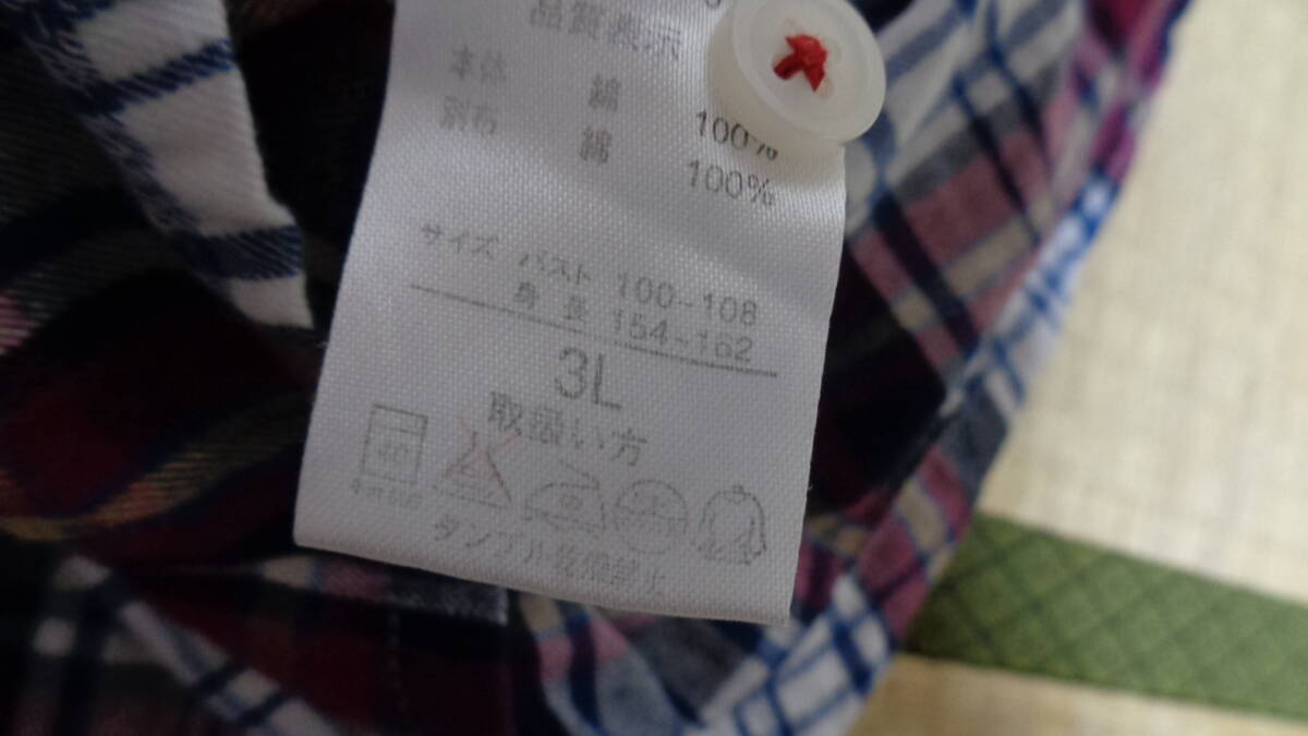 送料込みPerle la Couleur 綿100% チェック柄 7分袖シャツ 裾フリル 大きいサイズ 3L