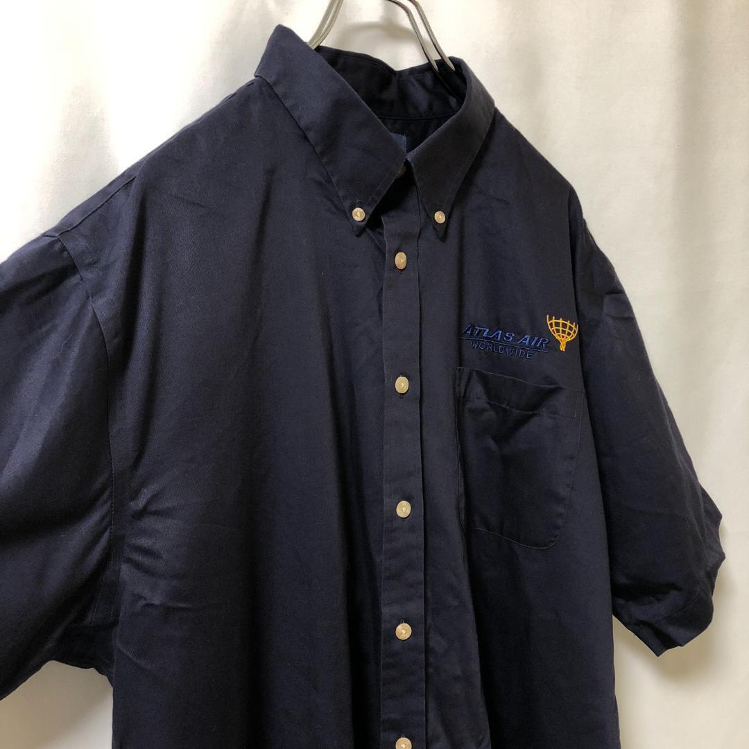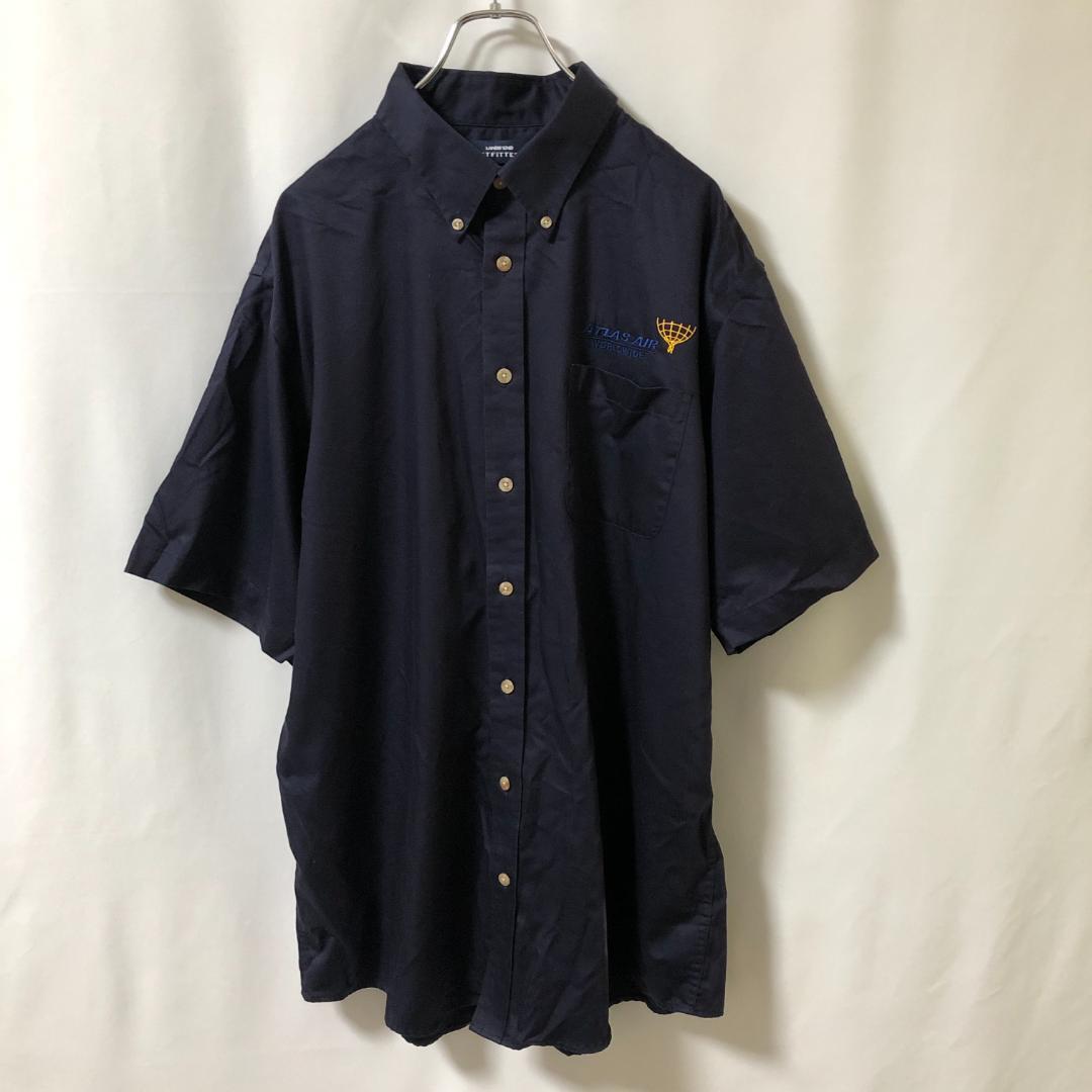 □タイプ:ワークシャツ ボタンダウン 半袖シャツ ビッグシルエット オーバーサイズ 大きいサイズ アメリカ古着 米国サイズ 企業ロゴ 刺繍 メンズ