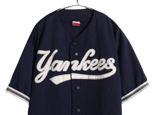 商品名 | ヤンキース ベースボール シャツ メンズ XL 程/ MLB オフィシャル マジェスティック 大リーグ メッシュ ユニフォーム ゲームシャツ 重ね着 |