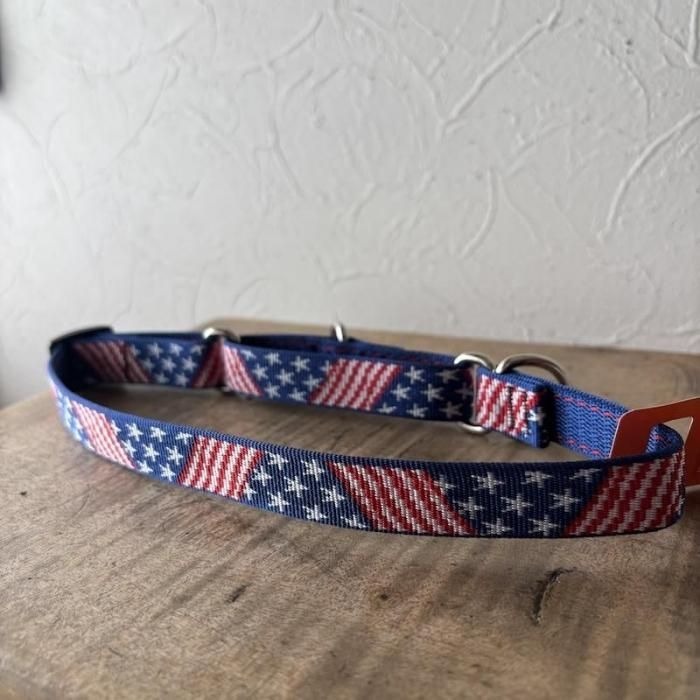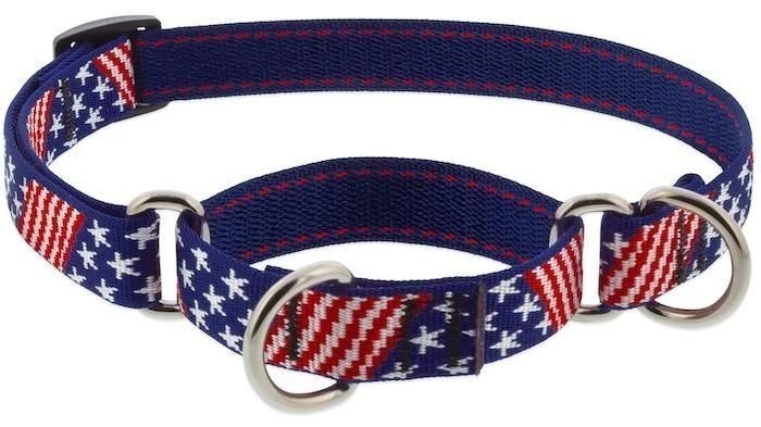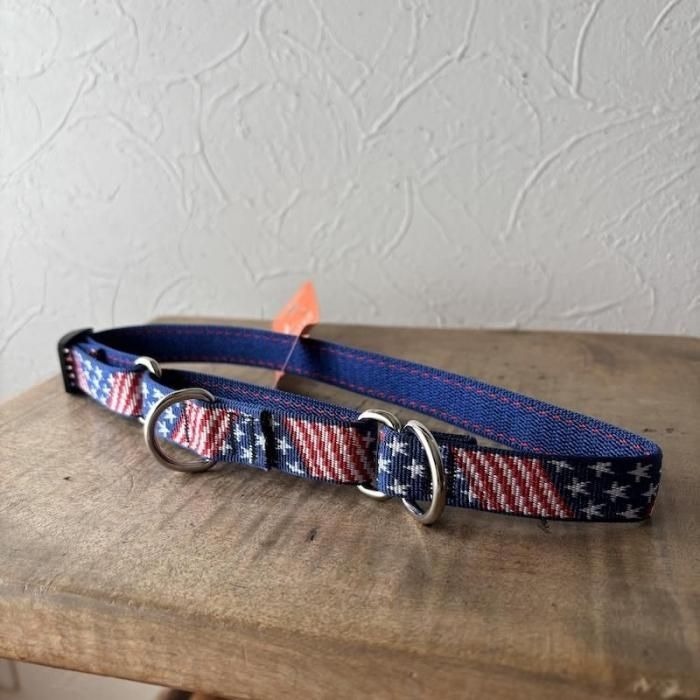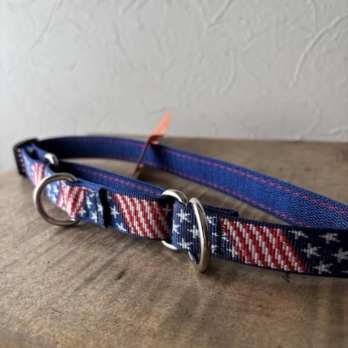 引っ張り防止や訓練の合図を送るのに役立つトレーニング用のハーフチョークカラー、マーチンゲールです。