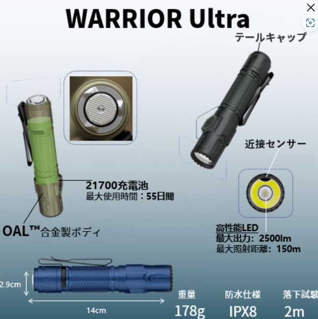 ■出品名:Olight オーライト Warrior Ultra OAL合金 ステルスグレー