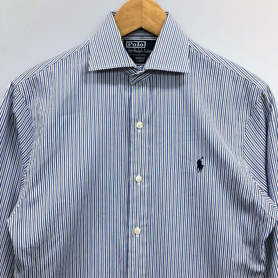 美品◆シャツ ポロ ラルフローレン 長袖シャツ 胸刺繍 ストライプ メンズ サイズ14 1/2 POLO RALPH LAUREN 【AFB17】