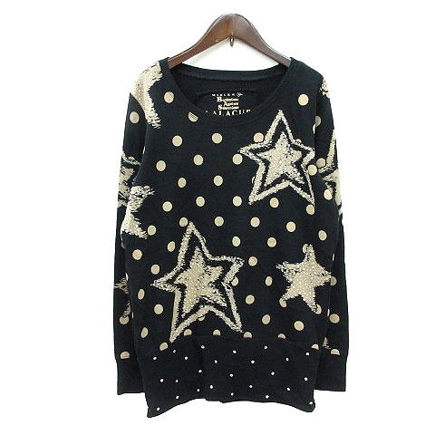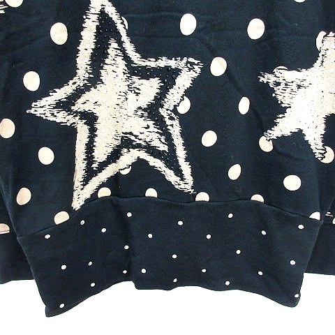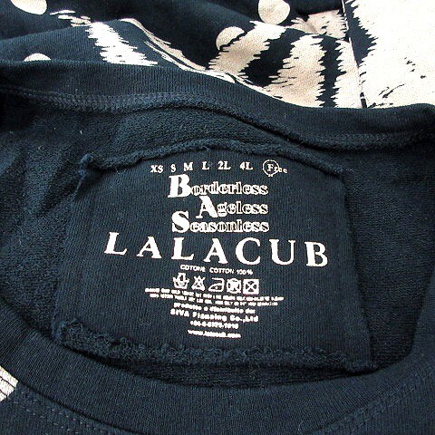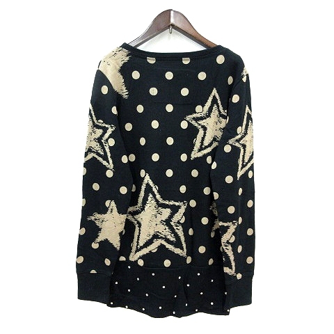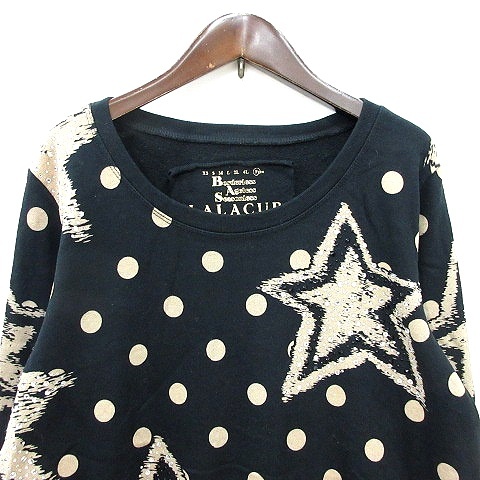 ララキューブ LALACUB トレーナー スウェット 総柄 長袖 ラインストーン チュニック丈 F 黒 ブラック /MN レディース
