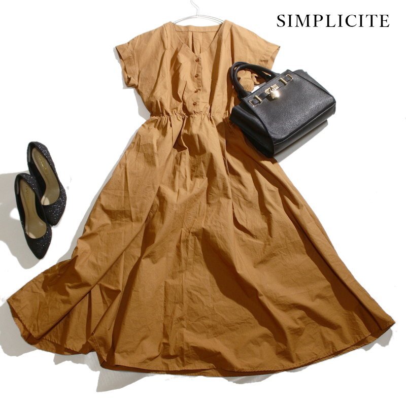 美品 SIMPLICITE シンプリシテェ 株) ジョイントワークス 夏 シャツ生地 ロングワンピース ブラウン 茶色 シャツワンピース ナチュラル